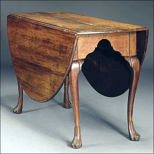 This Philadelphia Queen Anne drop-leaf table has the typical curved cabriole legs of the era it was made -- 1740 to 1760. It sold at Sotheby's New York for ,200.