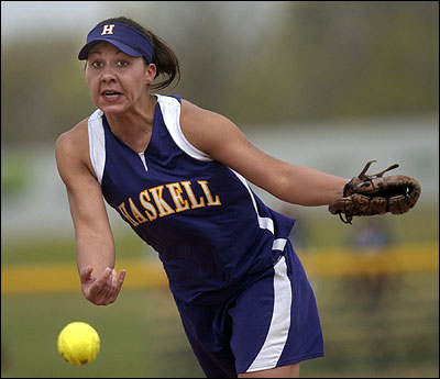 “If I can avoid a collision, I avoid it,” Haskell coach Gary Tanner said of base-running strategies, “but, really, if you’re scared, you should turn your gear in. None of ours have, and that’s the good part. We’re not afraid. The girls aren’t afraid. They get banged up, and they come back. They play when they’re a little tired and sore, but that’s just what athletes do.”