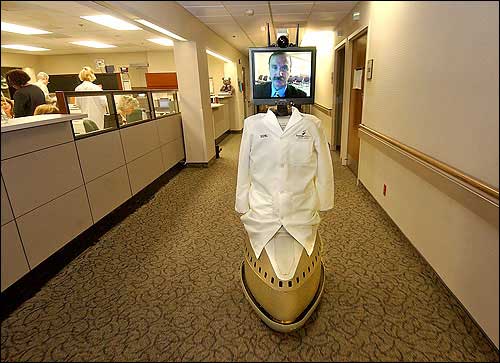 It may be a state-of-the-art RP-6 model like the one currently making the rounds at Shawnee Mission Medical Center. Named REMi by the hospital’s doctors and staff, the 5-foot-4 robot is equipped with a flat-screen computer monitor, two-way video feed, a microphone and a speaker.