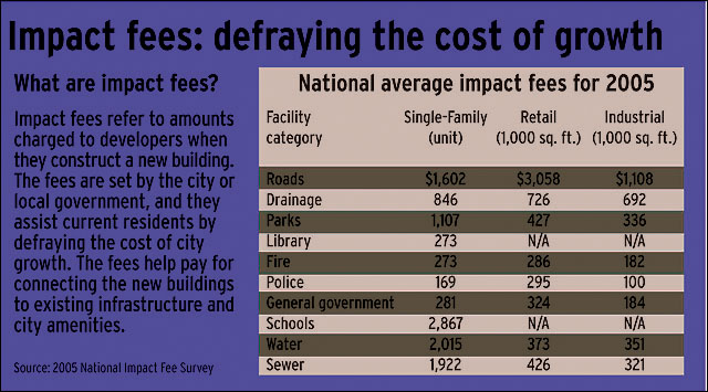 Her association, hoping to avoid new “impact fees,” did a study in 2001 suggesting that, after development fees and sales and property taxes are added up, taxpayers bear little of the cost of building a housing subdivision.