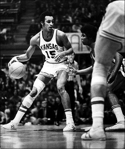 Former Kansas University standout Bud Stallworth (15) is seen during his playing days. Stallworth, who played for the Jayhawks in 1970-72, will have his jersey raised to the rafters during halftime of tonight's KU-Missouri game at Allen Fieldhouse.