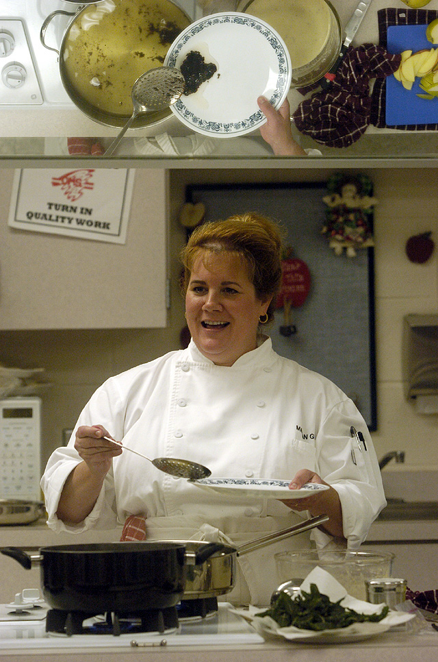 She eventually was hired as a cook at Wolfgang Puck’s Grand Cafe at Disney World, and after three months was named pastry chef. She served desserts to Billy Graham, Michael Jordan and Christopher Reeve. She says her hand-decorated cake for Scout, the daughter of Demi Moore and Bruce Willis, was destroyed in a family food fight in the upscale restaurant.