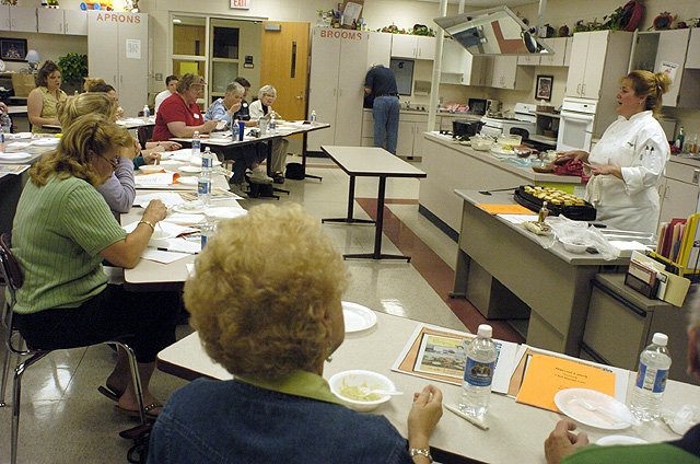 Chef Marian Getz prepares a dish during a cooking class in connection with Key