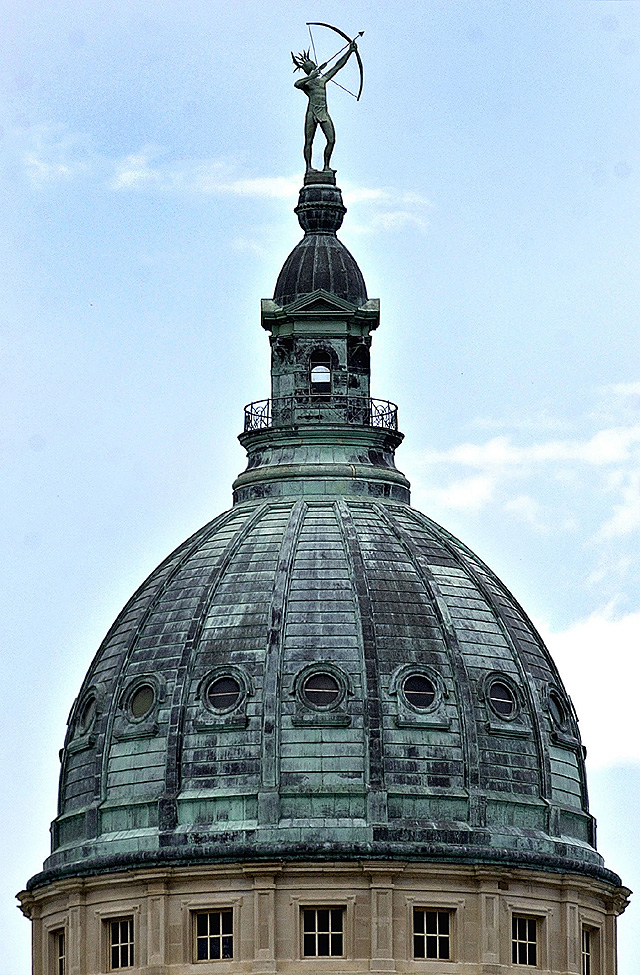 The cleaning and restoring of the copper patina on the Kansas Statehouse dome in 2000 was part of the larger 20 million Capitol restoration project in Topeka that is ongoing. Sunlight, temperature and humidity affect how the green patina returns.