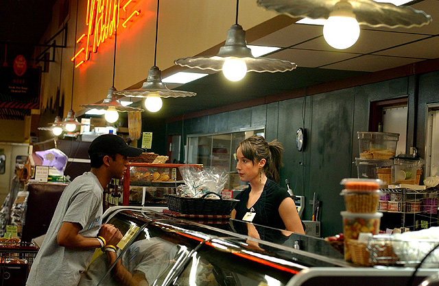 Community Mercantile Co-op deli employee Meryl Kass takes an order from Lawrence resident Amik Ahmad on Tuesday afternoon in the store. The Merc is considering plans for expanding its deli operations, which currently are in the back of the store at 901 Iowa.