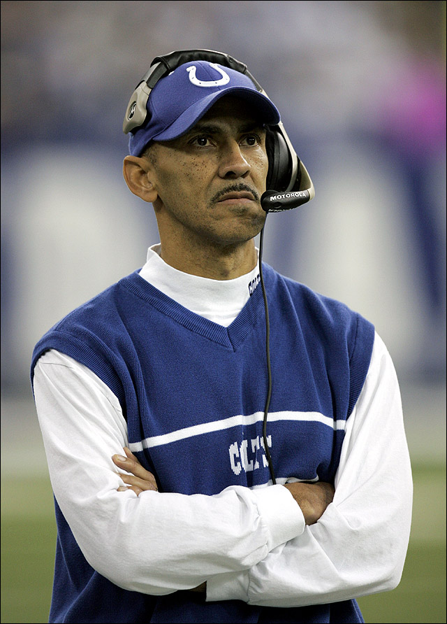 Indianapolis Colts coach Tony Dungy looks on during a NFL football game against the Tennessee Titans in Indianapolis in this Dec. 4, 2005 photo. In a breakthrough year for black coaches, the Chicago Bears' Lovie Smith and Cincinnati Bengals' Marvin Lewis led once-moribund teams to division championships. Tony Dungy's Indianapolis Colts flirted with a perfect season. Now their success _ Smith and Dungy finished 1-2 in AP Coach of the Year voting _ might be making less-successful teams more receptive to other minority coaching candidates. (AP Photo/Mark J. Terrill)