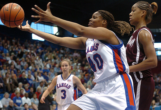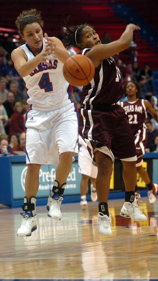 Notes: KU extended its streak of consecutive games with at least one three-point goal to 52. : Hallman’s six assists vaulted her into a tie with Jennifer Jackson for second place on the KU career list. :Kemp’s 20 shot attempts were a career high. She played a route-going 40 minutes for the fifth time this season. : Kemp had nine boards and Taylor McIntosh eight as KU outrebounded the Aggies, 37-26. A&M had only four offensive boards.