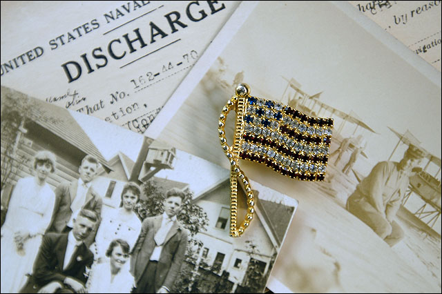 Her mother wore the flag pendant, measuring 2 inches by 1 1/2 inches, on special holidays and to her husband’s veteran meetings, starting in the 1950s or 1960s.