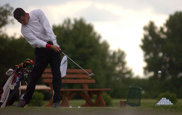 Kansas University golfer Gary Woodland lets loose a drive. KU coach Ross Randall said Woodland hit the driver better than any of his other players, past or present.
