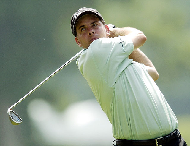 Former Kansas University golfer Matt Gogel watches a shot at the 2005 Booz Allen Classic. KU coach Ross Randall says Gogel hit the best short irons of any player he has coached.
