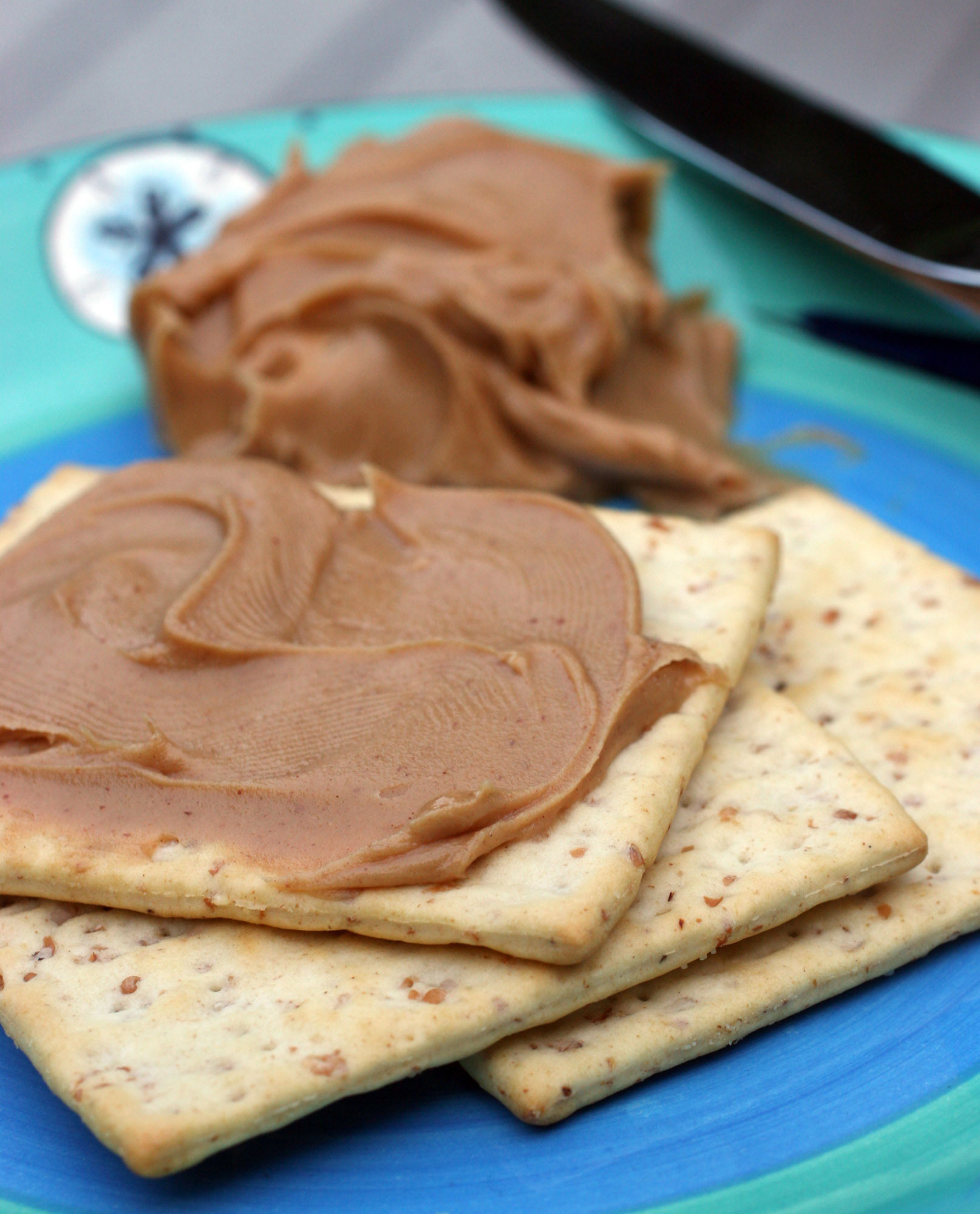 Nutrition expert Susan Krumm says an afternoon snack is just as important as a good breakfast for children. Three to six whole-grain crackers (depending on size) and 2 tablespoons of peanut butter makes a good, properly sized snack.