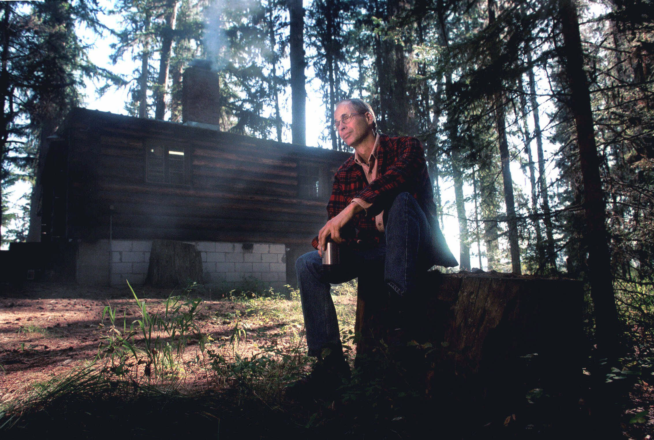 Author John Maclean sits near a cabin in the woods at Seeley Lake, Mont., in this Sept. 7, 1999, photo. Maclean's latest book about fatal fires is The