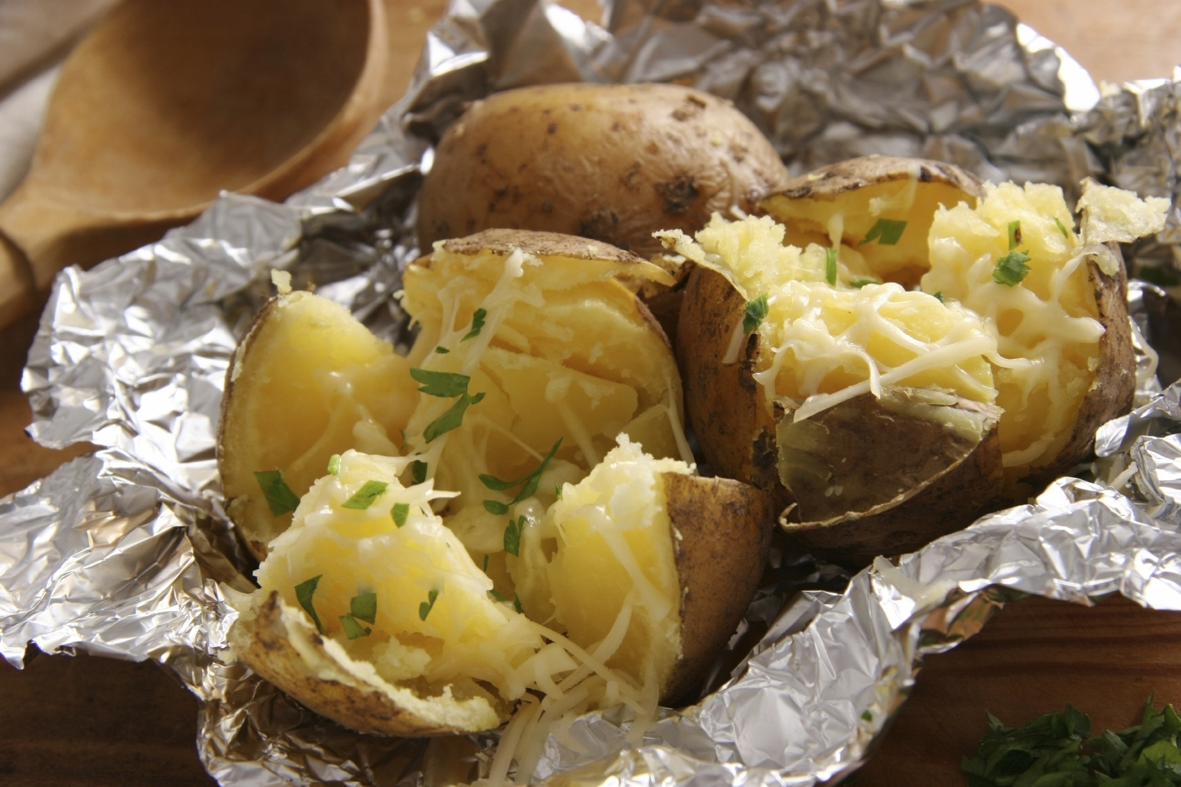 Au gratin potatoes2 pounds of potatoes, peeled and thinly sliced (about 5 cups)2 tablespoons melted butter1/2 teaspoon salt1/4 teaspoon black pepper1 cup grated sharp cheddar cheese1/4 cup fresh bread crumbsPreheat oven to 425 degrees. Lightly grease a shallow 1 1/2 quart casserole with butter. Arrange sliced potatoes in layers.Sprinkle with melted butter, salt and pepper. Top with grated cheddar cheese and bread crumbs. Bake 30 minutes, covered. Uncover and bake an additional 15 minutes or until potatoes are tender.Source: Idaho Potato CommissionChorizo potatoes5 pounds potatoes, diced1 pound onions, small dice1 pound green bell peppers, small dice8 ounces butter or margarine2 tablespoons potato seasoning mix5 pounds chorizoPreheat a flat-top griddle to 350 degrees. Place the potatoes evenly on the griddle. Add the margarine, chorizo, onions and peppers, mix thoroughly. Add the seasoning mix and mix thoroughly once more. Cook the mixture until the potatoes have reached a golden brown and cooked completely. Be careful not to overmix the potatoes after they have cooked or they will break down. Hold at a minimum temperature of 140 degrees.Source: Idaho Potato CommissionItalian potatoes2 cups 1-inch cubed unpeeled baking potatoes (approximately 3 medium)3/4 cup finely chopped onion (1 1/2 medium)1/2 cup finely chopped carrot (1 medium)1/2 cup low-sodium chicken broth2 tablespoons tomato paste1/4 teaspoon pepper2 tablespoons parsley1/4 teaspoon salt2 cloves garlic, finely choppedCook all ingredients except parsley in 2-quart saucepan over medium-low heat 25-30 minutes. Stirring occasionally, until potatoes are tender. Stir in parsley. Makes 6 servings.Source: Maine Potato BoardCumin cream potatoes5 pounds yellow potatoes4 teaspoons ground cumin 2 teaspoons whole cumin seeds1/4 cup butter1 cup heavy cream Salt and ground pepper as needed Pare and dice potatoes into 1/2- to 3/4-inch pieces. Cover with cold water in stock pot and gently simmer 10 minutes or until tender. Drain potatoes. Transfer to mixing bowl, and mash with wire whip. Mix in remaining ingredients and salt and pepper to taste. Set aside and keep warm until service.Source: Washington State Potato CommissionSweet potato salad2 1/2 pounds sweet potatoes 1/4 cup olive oil 1 teaspoon salt 1 small jalapeño pepper, diced fine 1 teaspoon ground cumin 1 scallion 2 teaspoons fresh lime juice Lime wedges 1/4 cup fresh coriander leavesIn a large saucepan, cover potatoes with salted cold water by 1 inch and simmer, covered, until just tender, about 15 to 30 minutes, depending on size of potatoes. In a colander, drain potatoes and cool to warm. Peel potatoes and cut crosswise into 1/2-inch thick slices.While potatoes are boiling, prepare grill. In a small bowl, whisk together oil, salt, jalapeño pepper and cumin, and brush some onto both sides of potato slices, reserving remaining cumin oil. Grill slices on an oiled rack set 5 to 6 inches over glowing coals until golden brown, about 1 minute on each side, and transfer with tongs to a platter.Thinly slice scallion diagonally and sprinkle over potatoes. Whisk lime juice into remaining cumin oil with salt and pepper to taste and drizzle over potatoes. Serve with lime wedges and sprinkle with coriander.Source: www.foodnetwork. com