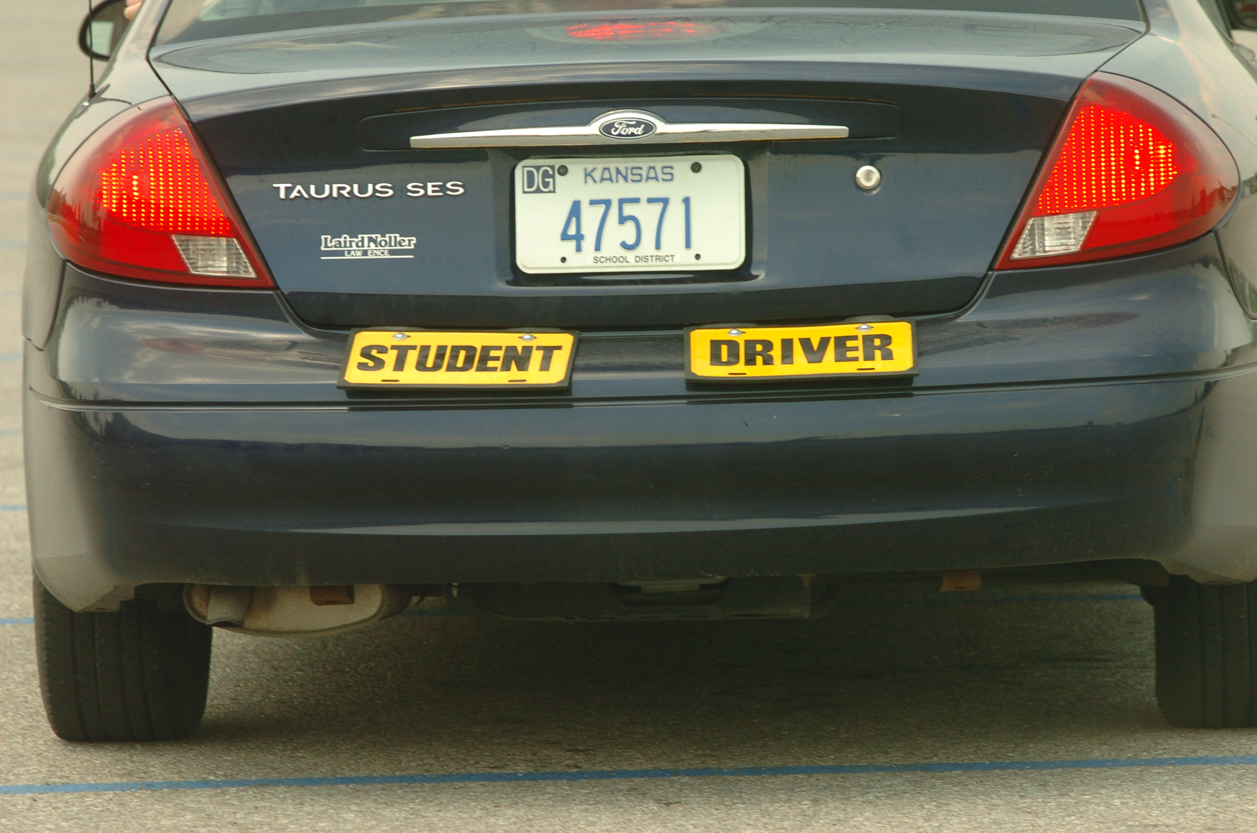 Cars used by students in the driver's education program carry specific signs to identify young learners to other drivers on the road.