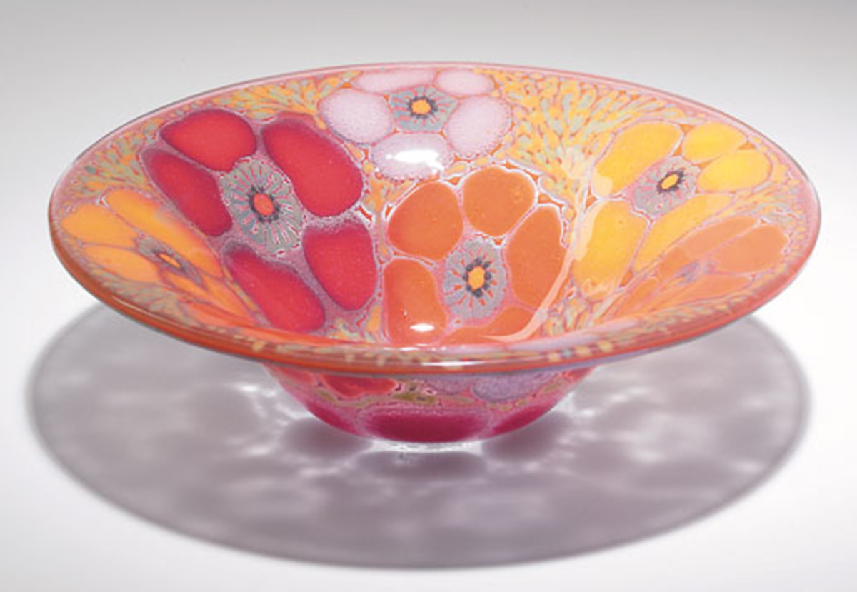 In the 1940s and ’50s, creative glassmakers who worked in their own styles were experimenting with new ways to shape and decorate glass. Michael Higgins and his wife, Frances, both artists, began making fused glass using an old method. But they used new, colorful designs. A piece of glass was decorated, then a second piece of glass was placed on it like a sandwich. The sandwich was put into a mold and heated. The glass slumped (bent) into the shape of the mold, with the design inside the two pieces of glass. The finished ashtray or bowl was durable and eye-catching. By 1962, other glassmakers had discovered that glass could be shaped at lower temperatures in small furnaces, and artists began to study glass forming and design. Michael and Frances Higgins made glass until the 1990s. Their useful glass candlesticks, ashtrays, bowls, boxes and plates were shipped from the Dearborn Glass Co. near Chicago and sold in stores in all parts of the United States. The pieces were not considered “art” until collectors discovered them in the late 1980s. Because Michael and Frances made commercial wares, there is still much Higgins glass to be found. The unusual glass and the modern designs make it easy to recognize at a sale. Prices today range from $75 for an ashtray to thousands for a glass screen made of circles of glass. Look for Higgins glass. Most of it is signed.