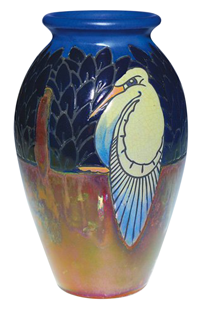 Jean Barol, a French potter, made this 8-inch vase decorated with birds and metallic luster glaze. It sold recently at a Cincinnati Art Galleries auction for 01.
