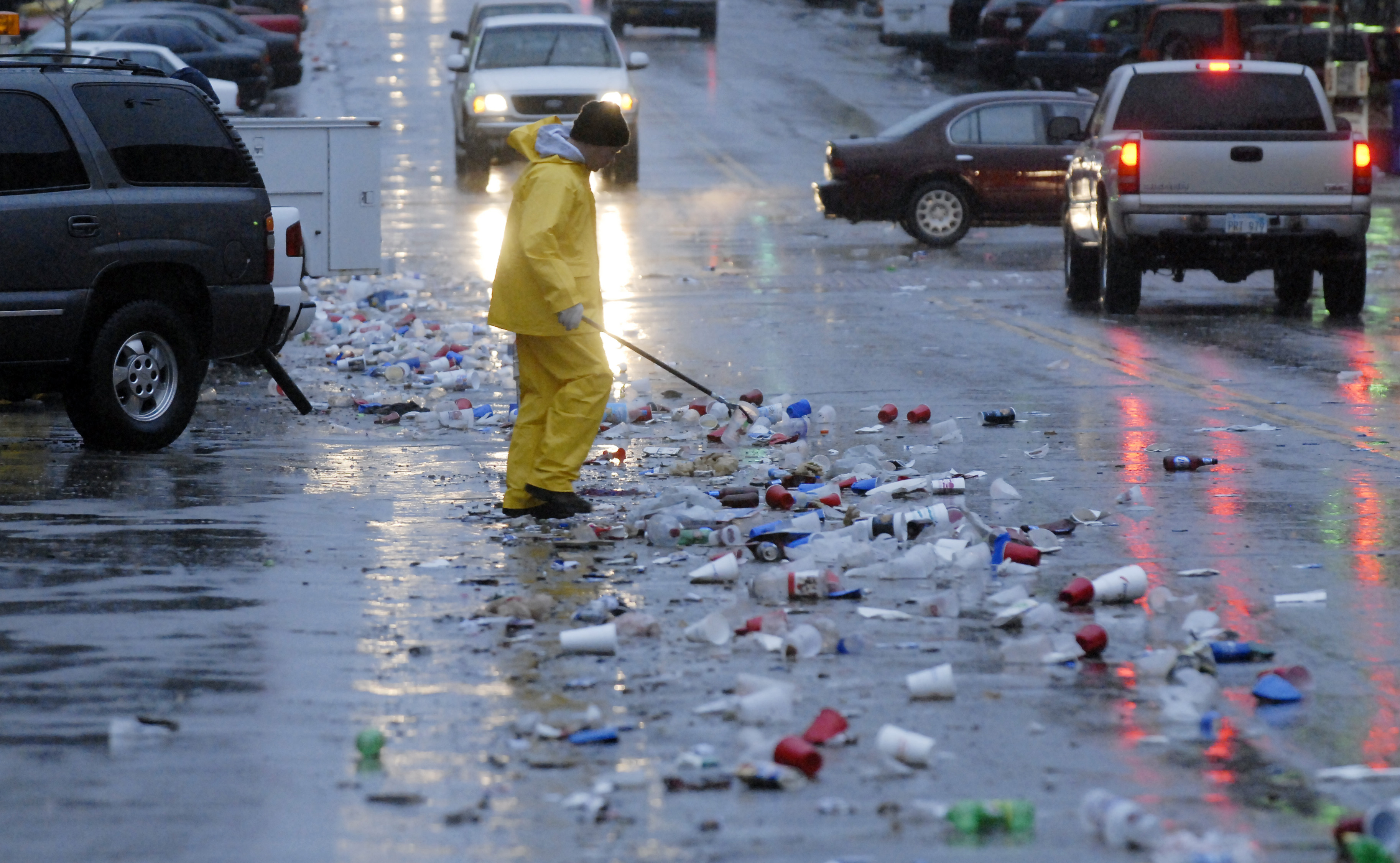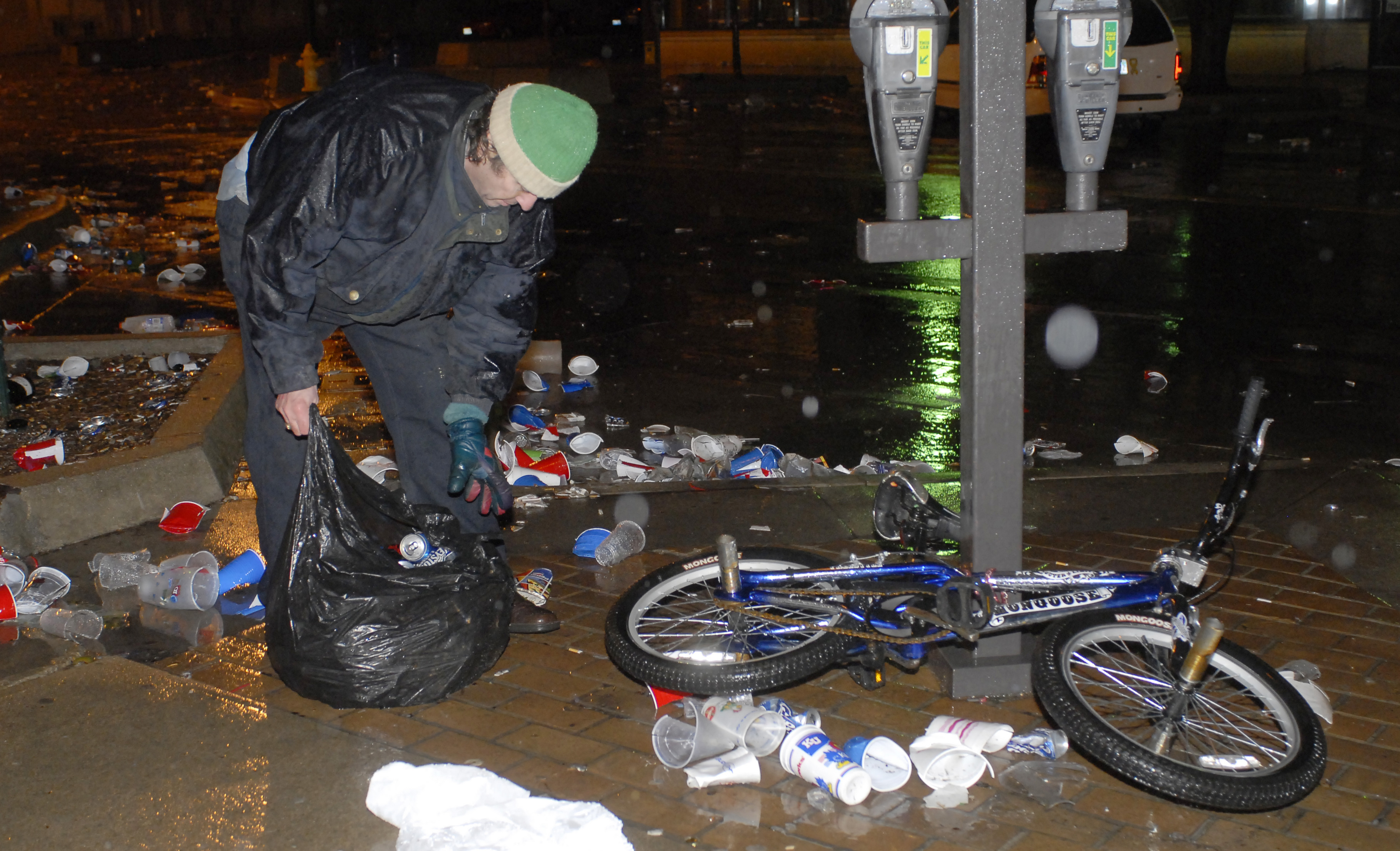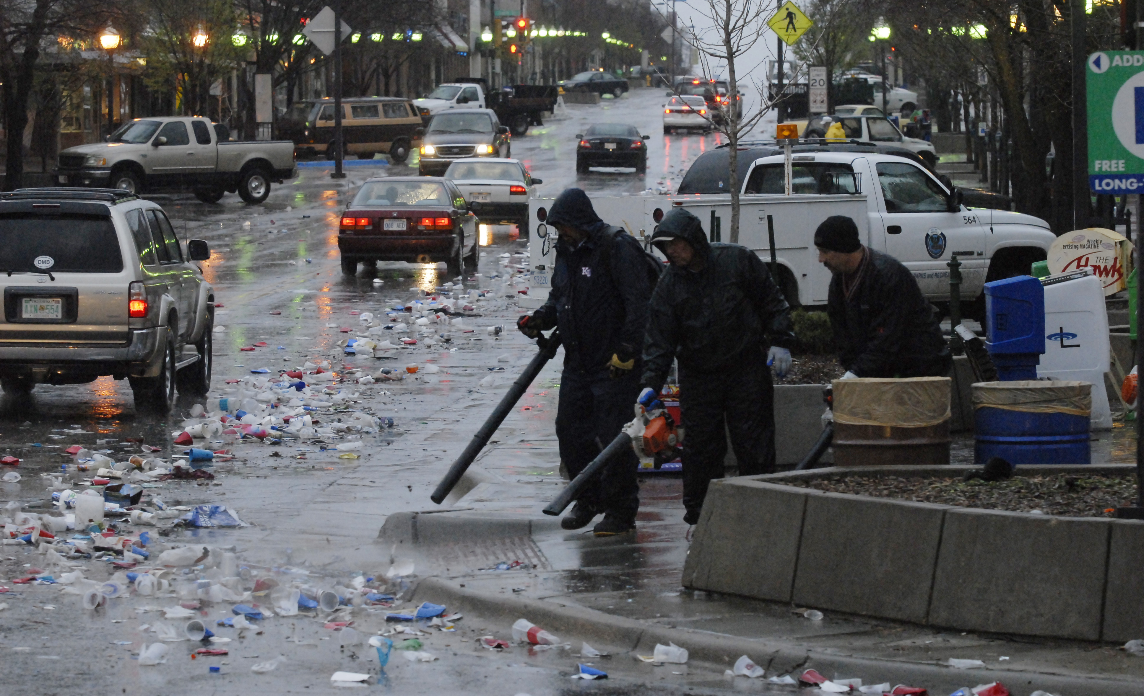 City Crews were out at 7:00 a.m. picking up the trash from the late-night into the early-morning parting in Downtown Lawrence after the Jayhawk won the national championship.