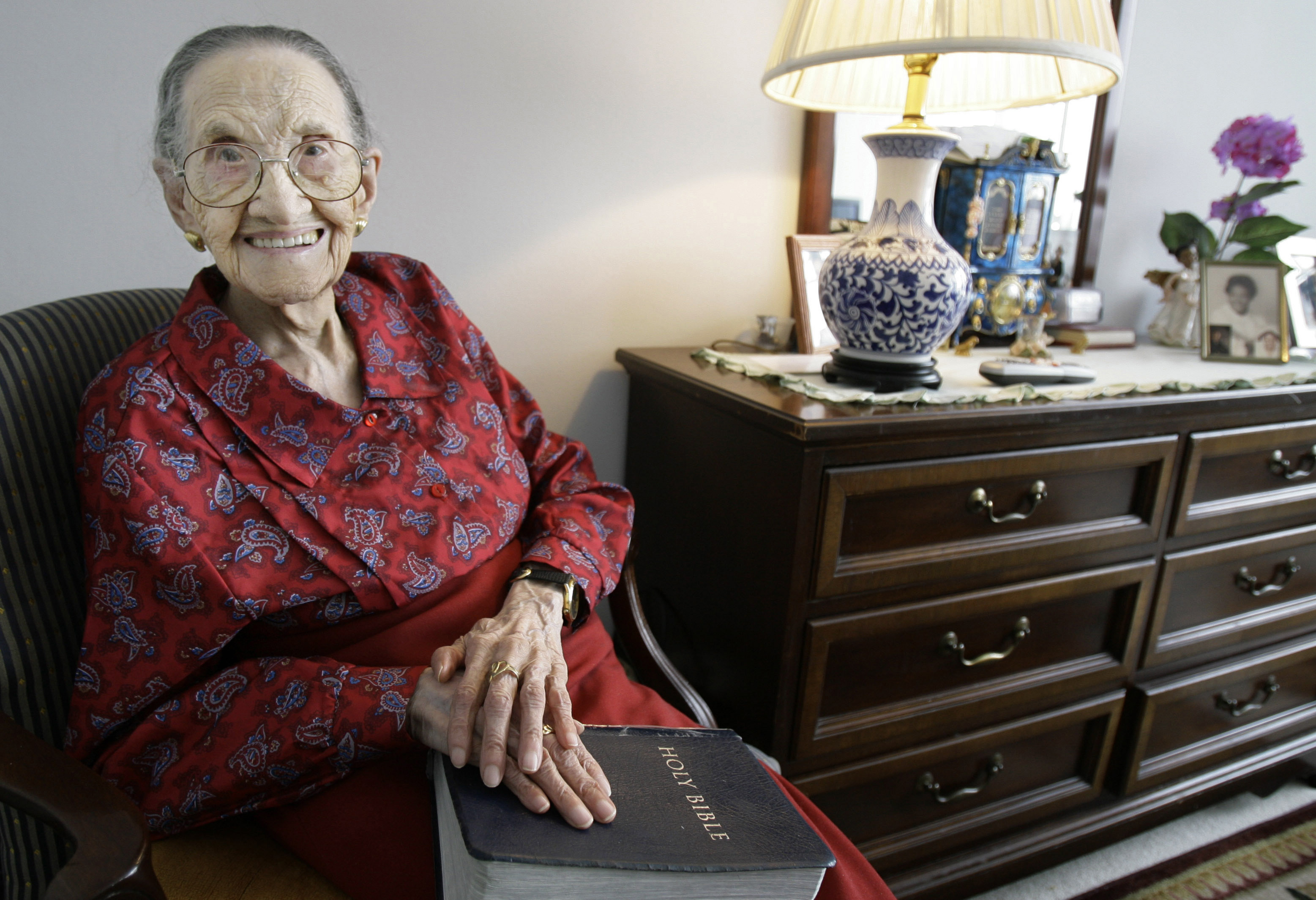 Rosa McGee, 104, sits inside her daughter's Chicago apartment with her Bible. A recent study has found that reaching the age of 100 has gotten easier. McGee is one of the healthy women in the study who managed to avoid chronic disease.