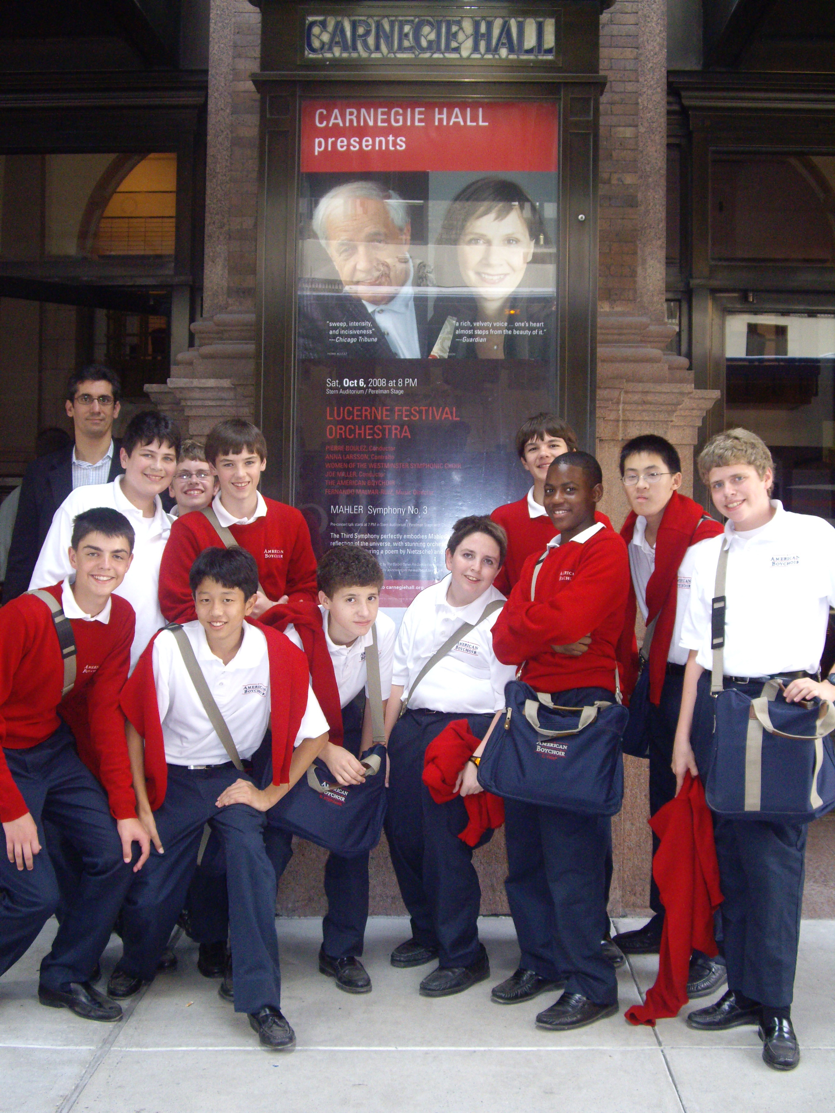 Members of the American Boychoir pose outside Carnegie Hall in New York City. Lawrence siblings Tristan and Adrian Brothers are former members of the choir, based in Princeton, N.J.