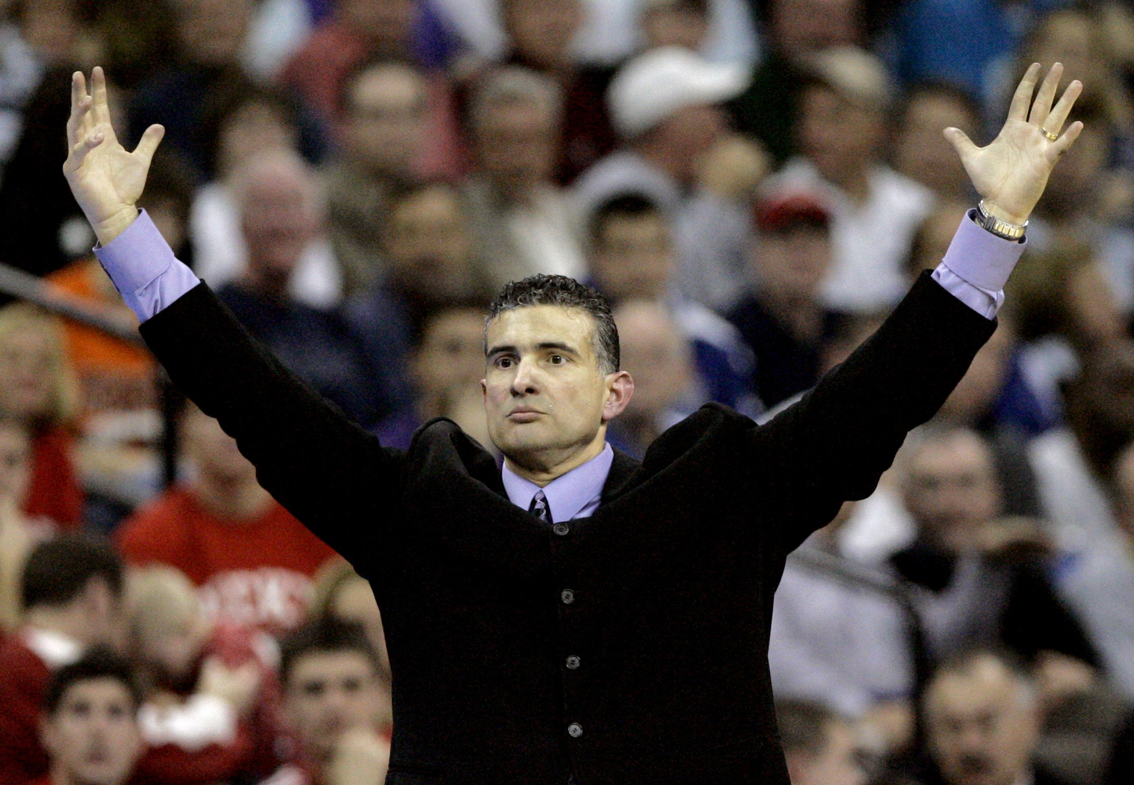 Kansas State coach Frank Martin signals a play during the first round of an NCAA men's basketball tournament Midwest Regional game against Southern California in Omaha, Neb., Thursday, March 20, 2008. Kansas State won 80-67.