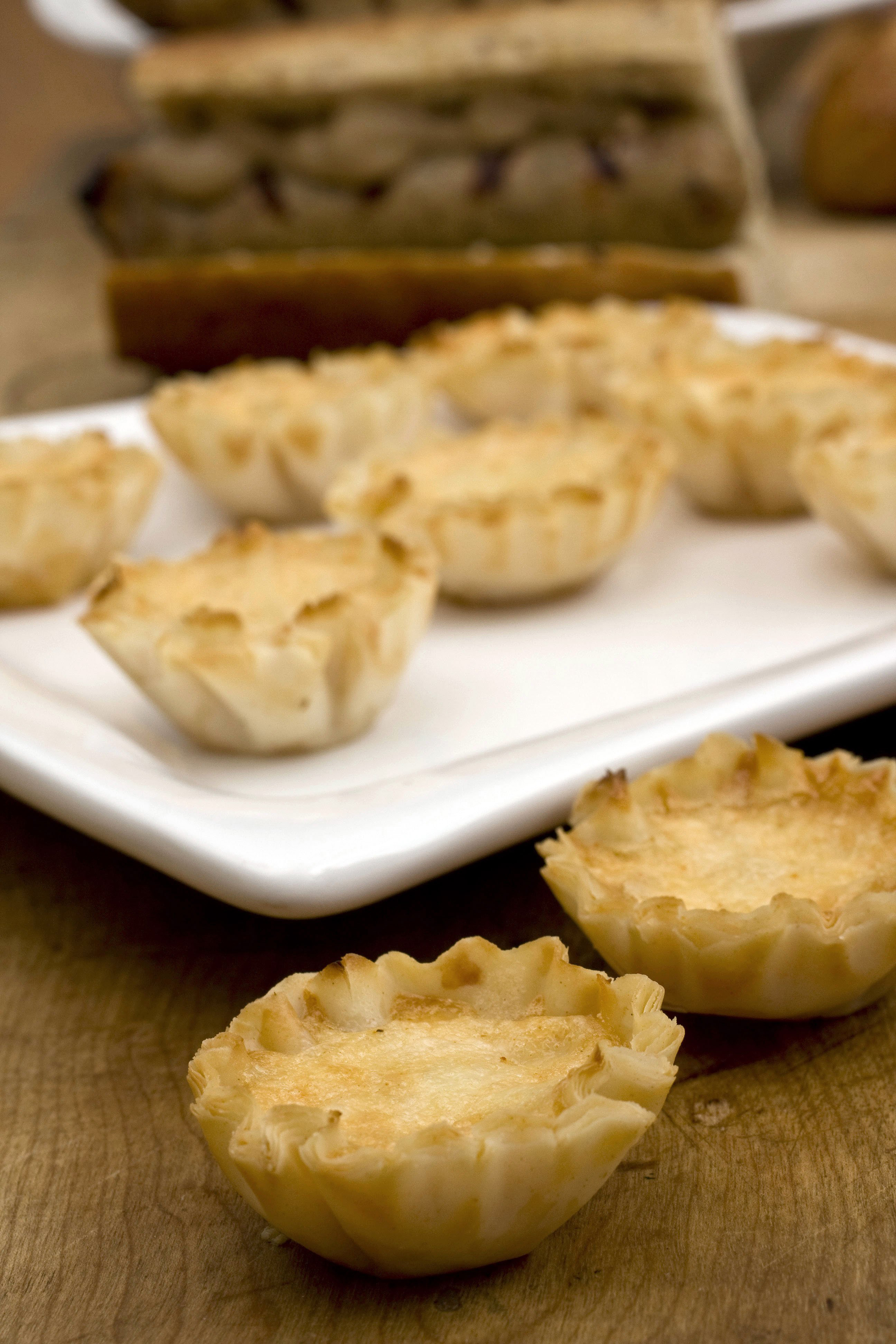 That’s the beauty of these miniature cheese tarts prepared in purchased phyllo dough tart shells.