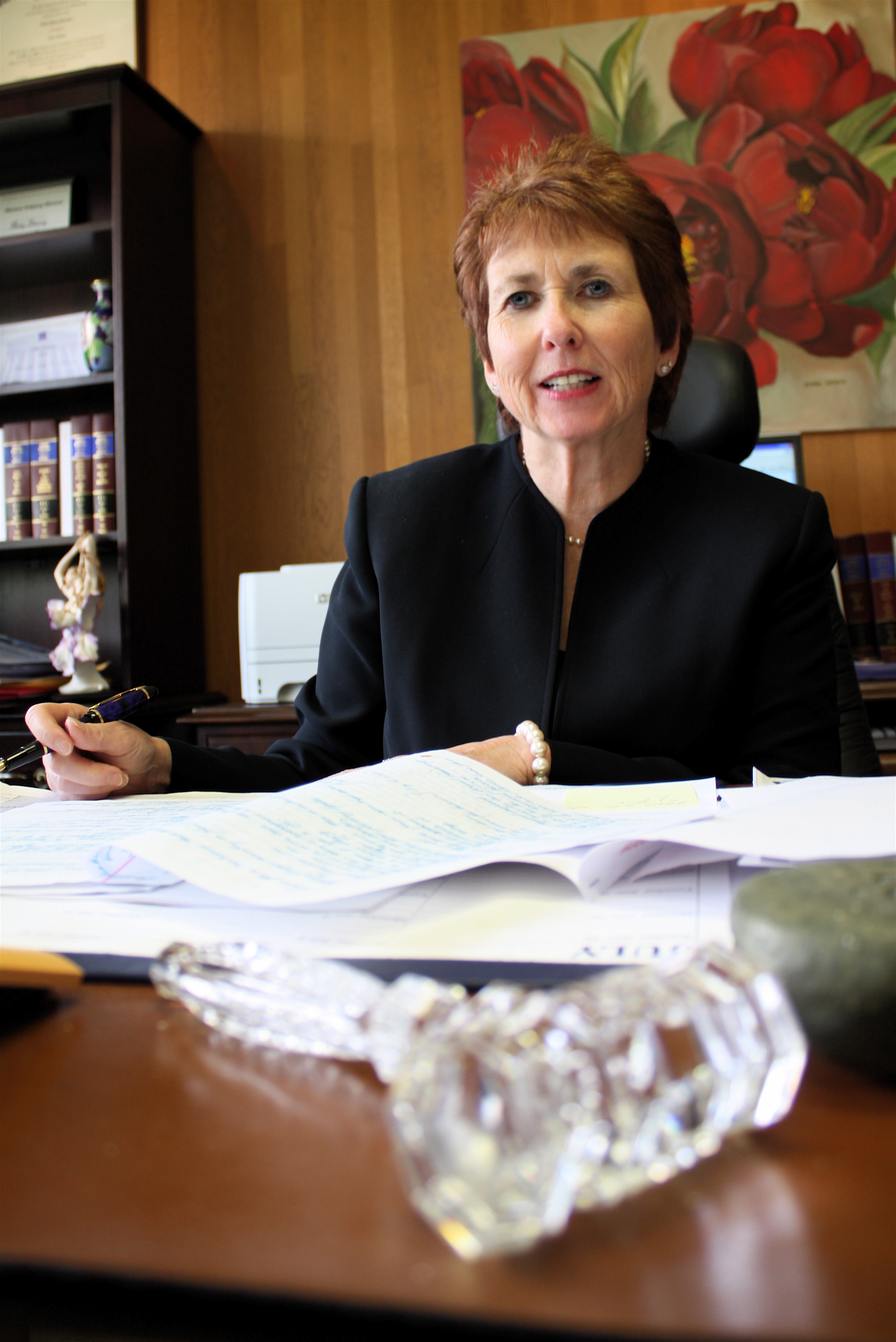 “I was sworn in (Jan. 15, 2009) and thrown into the courtroom after two days of ‘judge school’ in Topeka,” she explains. “It’s a bit of a sink-or-swim system. The Douglas County judges are very supportive of each other and are willing to throw out a lifeline, but you have to let them know you’re drowning. I was surprised at the amount of paperwork I have to review. I’d been warned about it but didn’t believe it.”