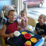 From left, Dacoda Craney, Maya Bradley and Trenton Dixon enjoy tea time last summer at Trinity In-Home Care.