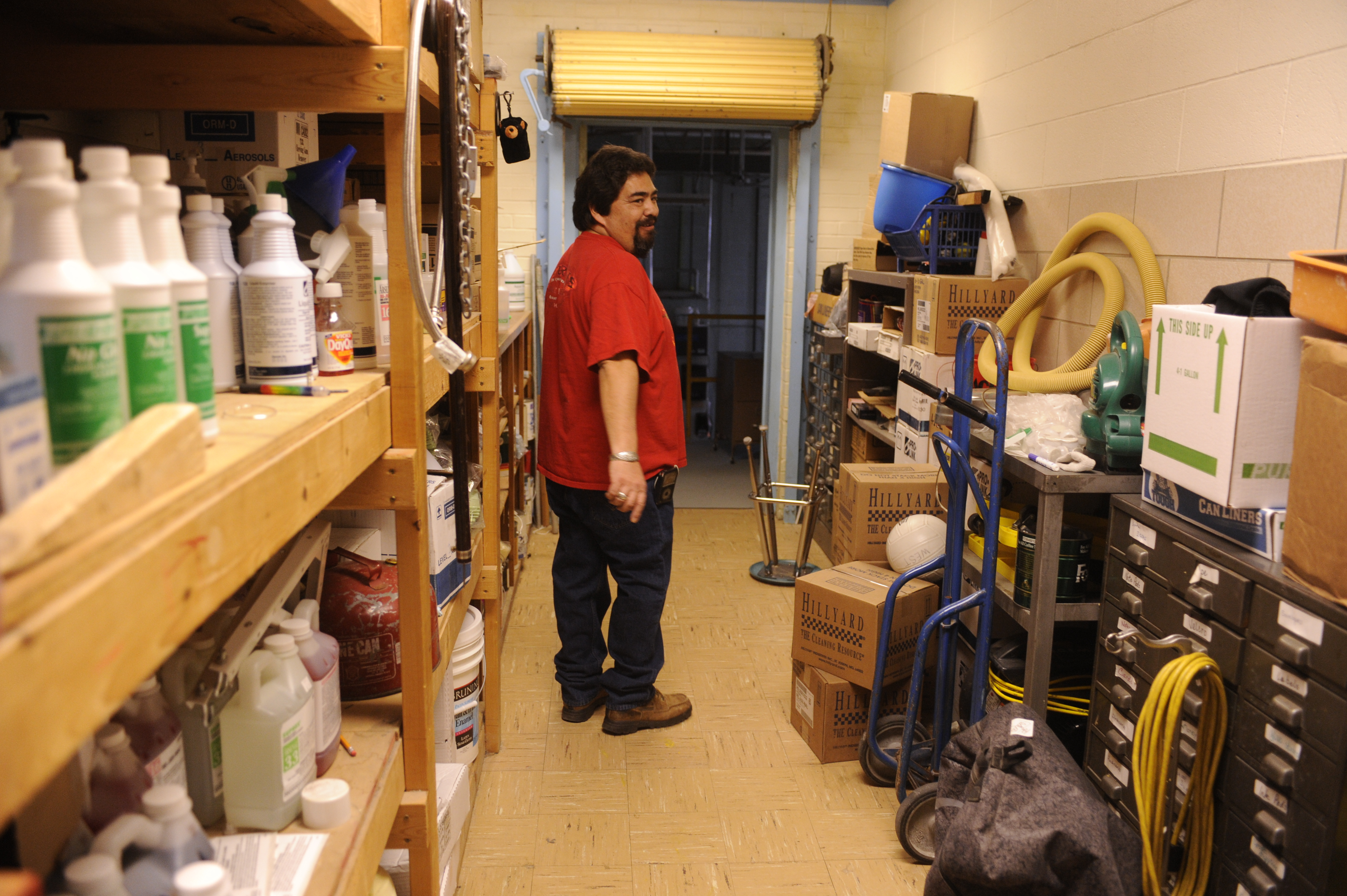 James Ortiz has a lot of variety to his day, whether cleaning or managing building maintenance, working with the public or checking locked doors and security.