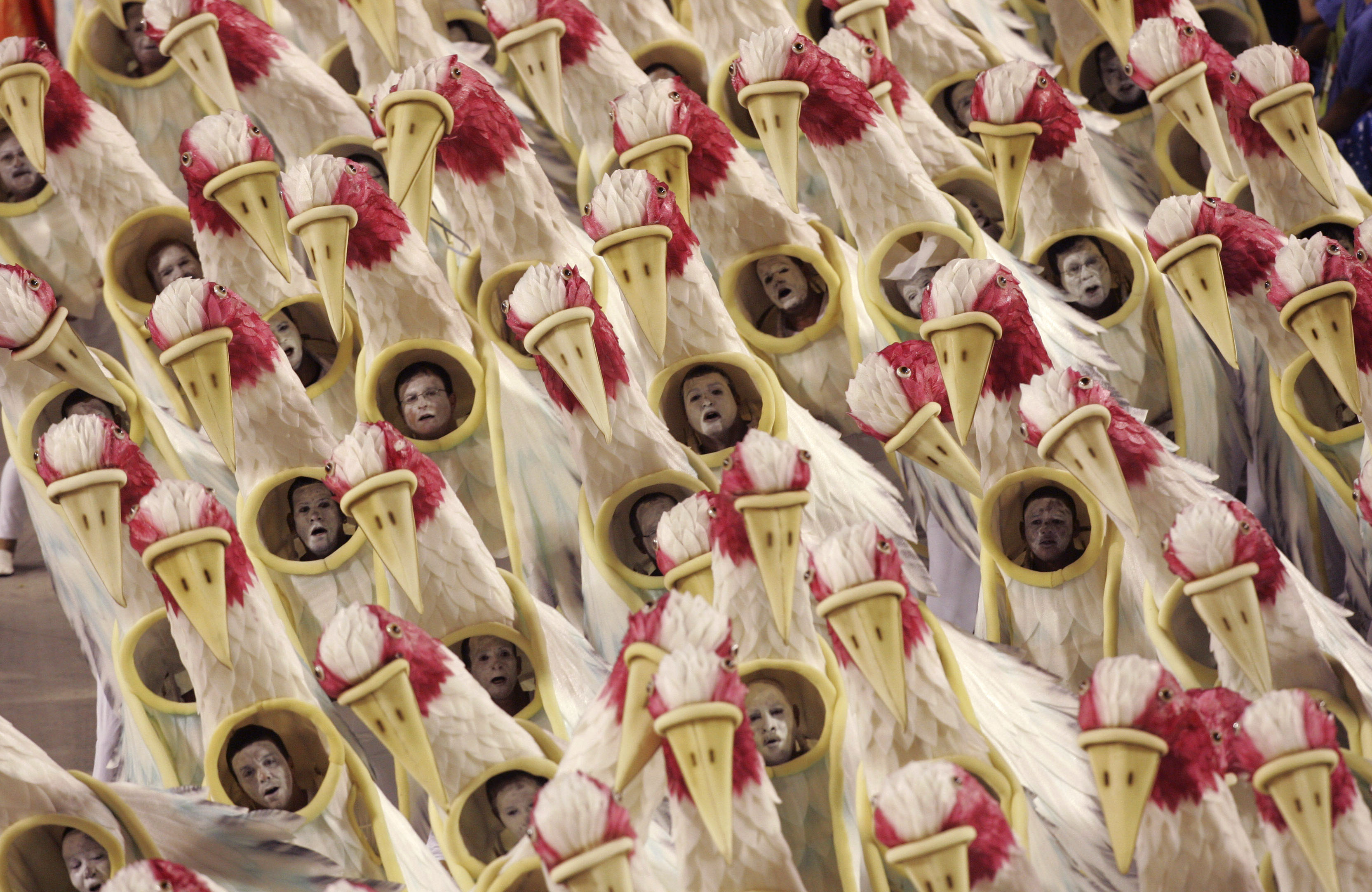 Portela samba school dancers parade Tuesday at the Sambadrome in Rio de Janeiro.