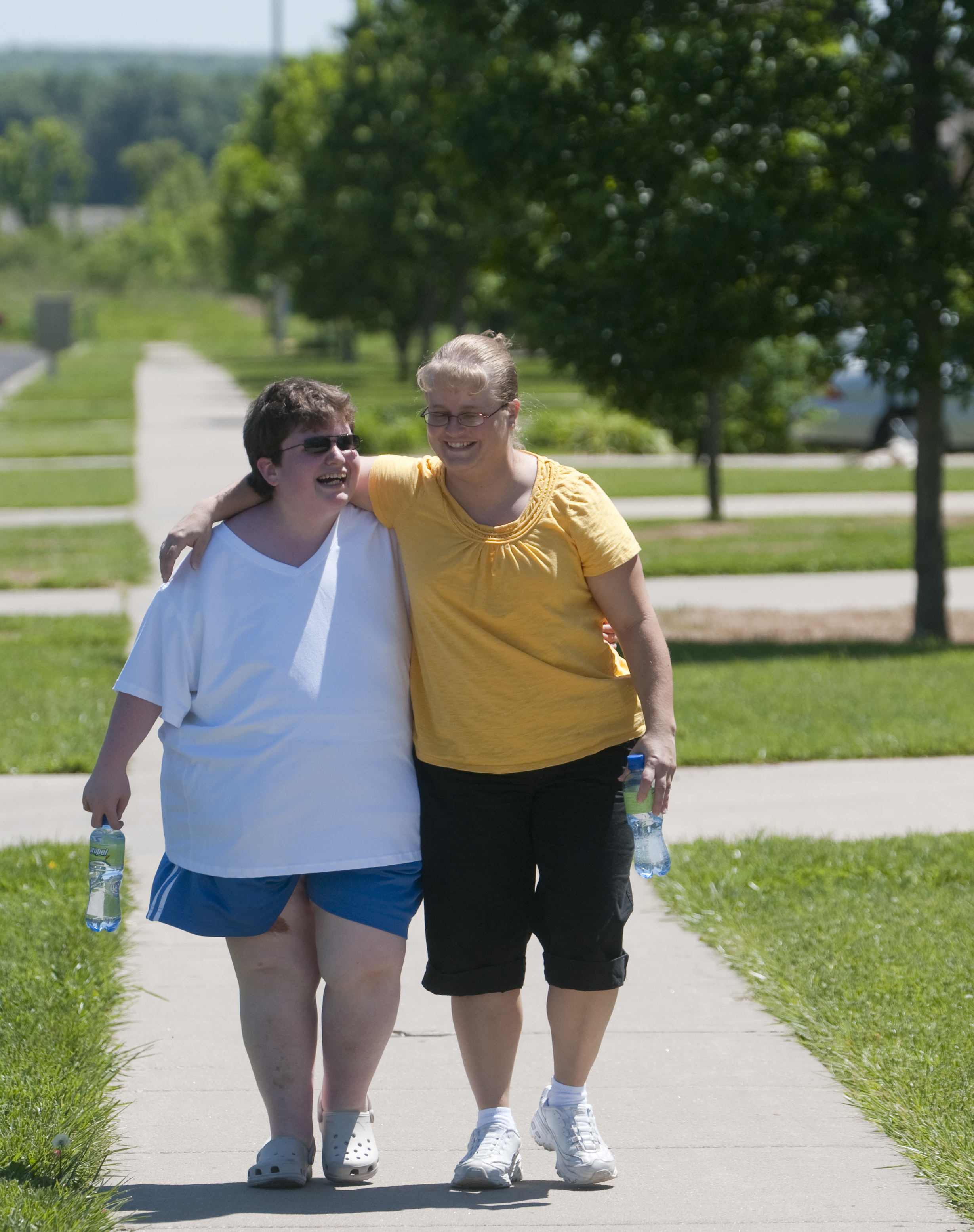 Mary Owen, a client of Trinity In-Home Care, left, and Christina Sibit, personal care attendant with Trinity, head out for an afternoon walk Tuesday, May 19, 2009. Trinity recently approved plans to open a second location to incorporate new programs. Owen is excited about the new programs, which will include group activities twice a week for individuals with developmental disabilities.