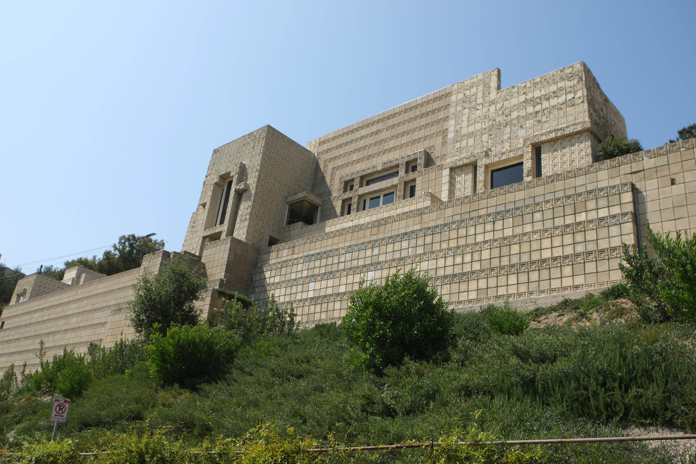 Completed in 1924 for Charles and Mabel Ennis, the owners of a men’s clothing store who liked to entertain, the house was the last and largest of four homes that Wright designed in an experimental “textile block” style.