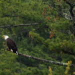 A bald eagle cries out while perched Friday in white pine near the Great Salt Bay in Newcastle, Maine. Some bird experts say the eagles are flying to Maine’s remote rocky islands, where they’ve been raiding the only known nesting colonies of great cormorants in the U.S.