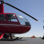 Roger Selch makes his way to a helicopter Wednesday at the Lawrence Municipal Airport. The county has hired Selch, of ICC Thermal Mapping & Surveying, to take photographs of the roofs of multiple county-owned buildings. The images will be used to determine the soundness of the roofs and specifically where they may be leaking.