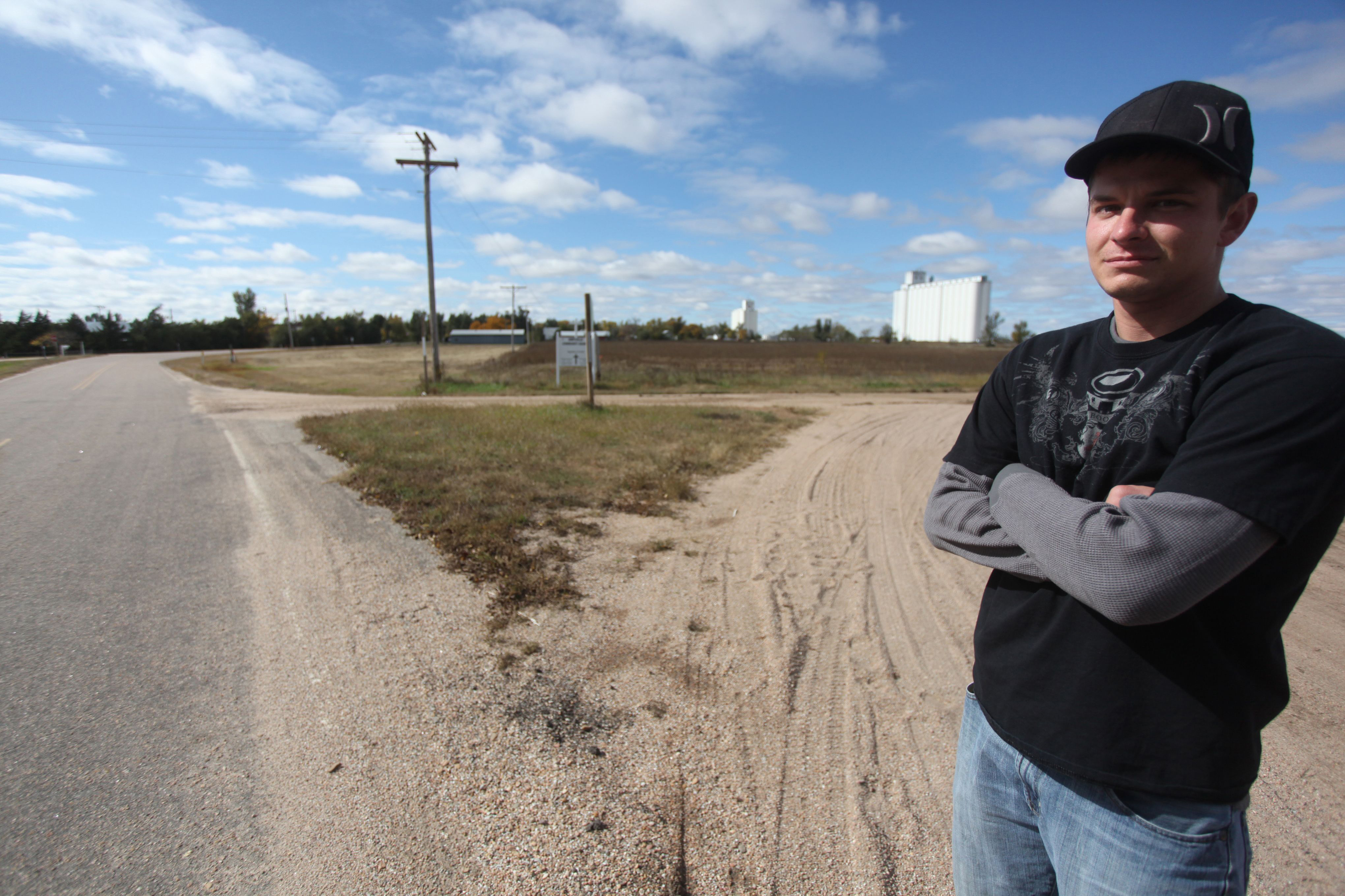 Levi Mitzner stands in this Oct. 23 photo along the curves just east of Abbyville, on Trails West Road where his motorcycle accident occurred in early August. Mitzner had also had a tumor removed from his brain when he was 17, making the accident his second near-death. experience.