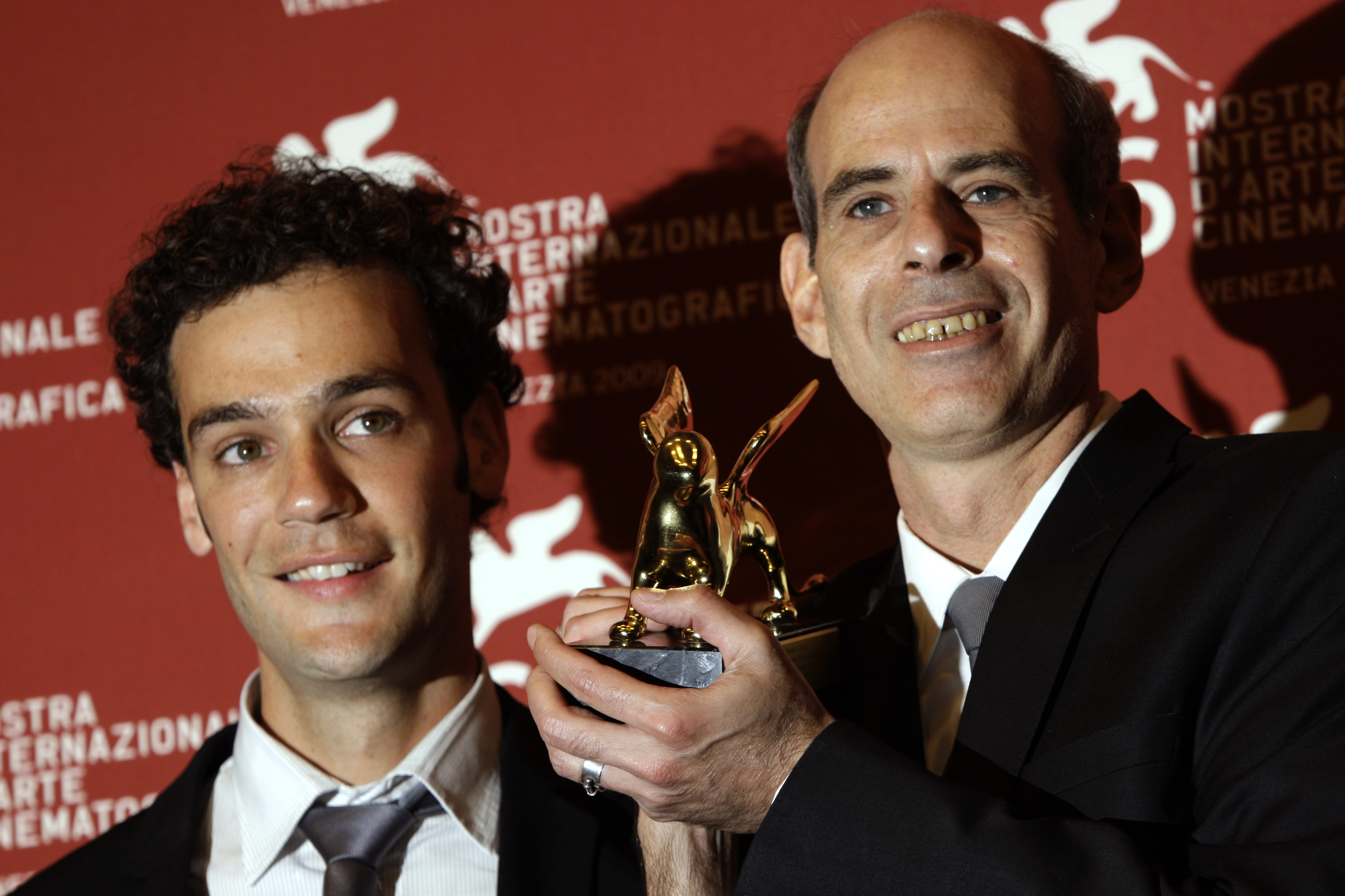Actor Yoav Donat, left, and director Samuel Maoz with the Golden Lion Best Film Award for “Lebanon” during the winners’ photo call at the 66th edition of the Venice Film Festival in Venice, Italy, which was Saturday.