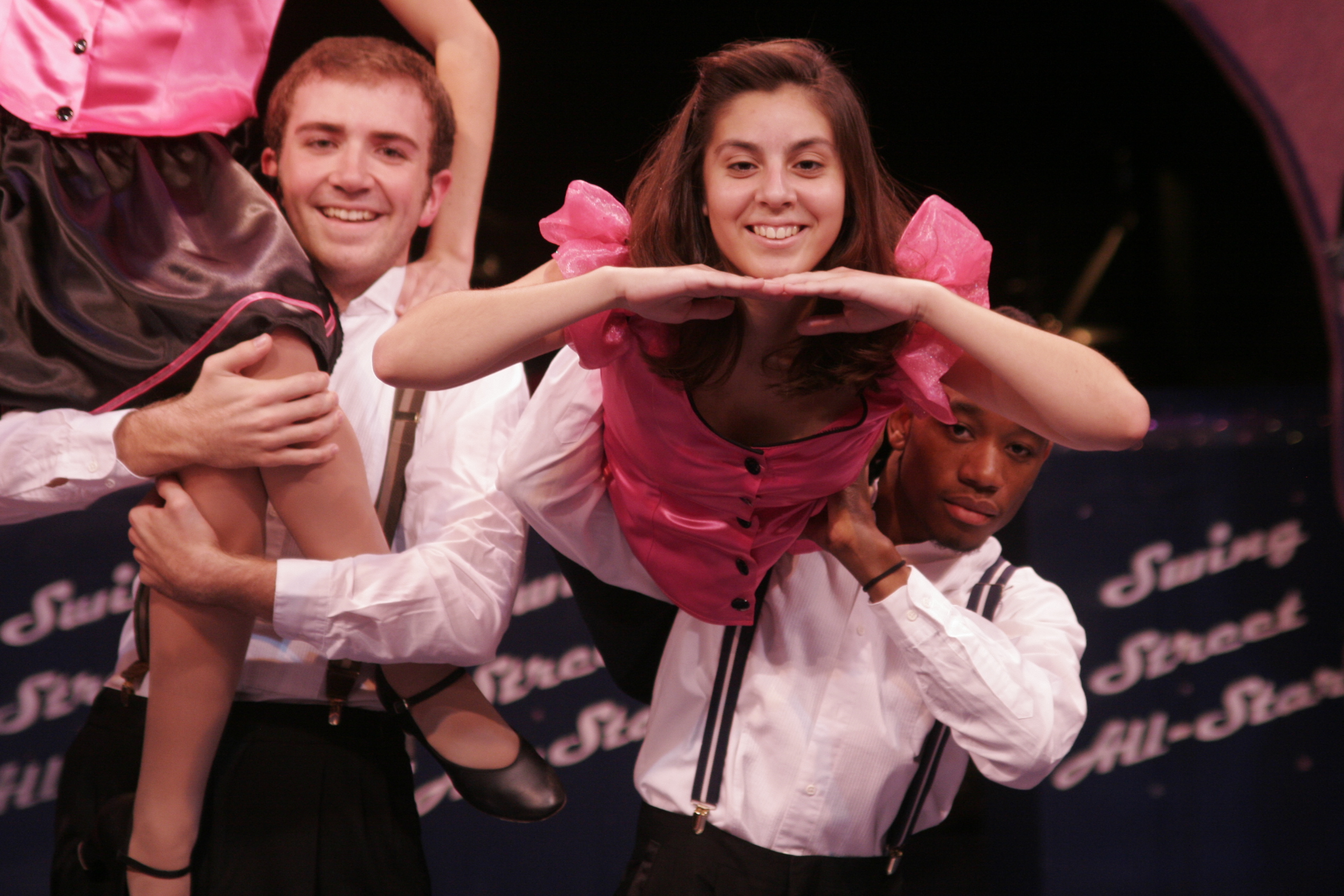 “Club Morocco” dancers, from left, Jared Martin, Gabrielle Sangervasi and Muncel Jones, rehearse a scene from the musical, which opens Friday at Lawrence Community Theatre, 1501 N.H. Shows continue through Oct. 4.