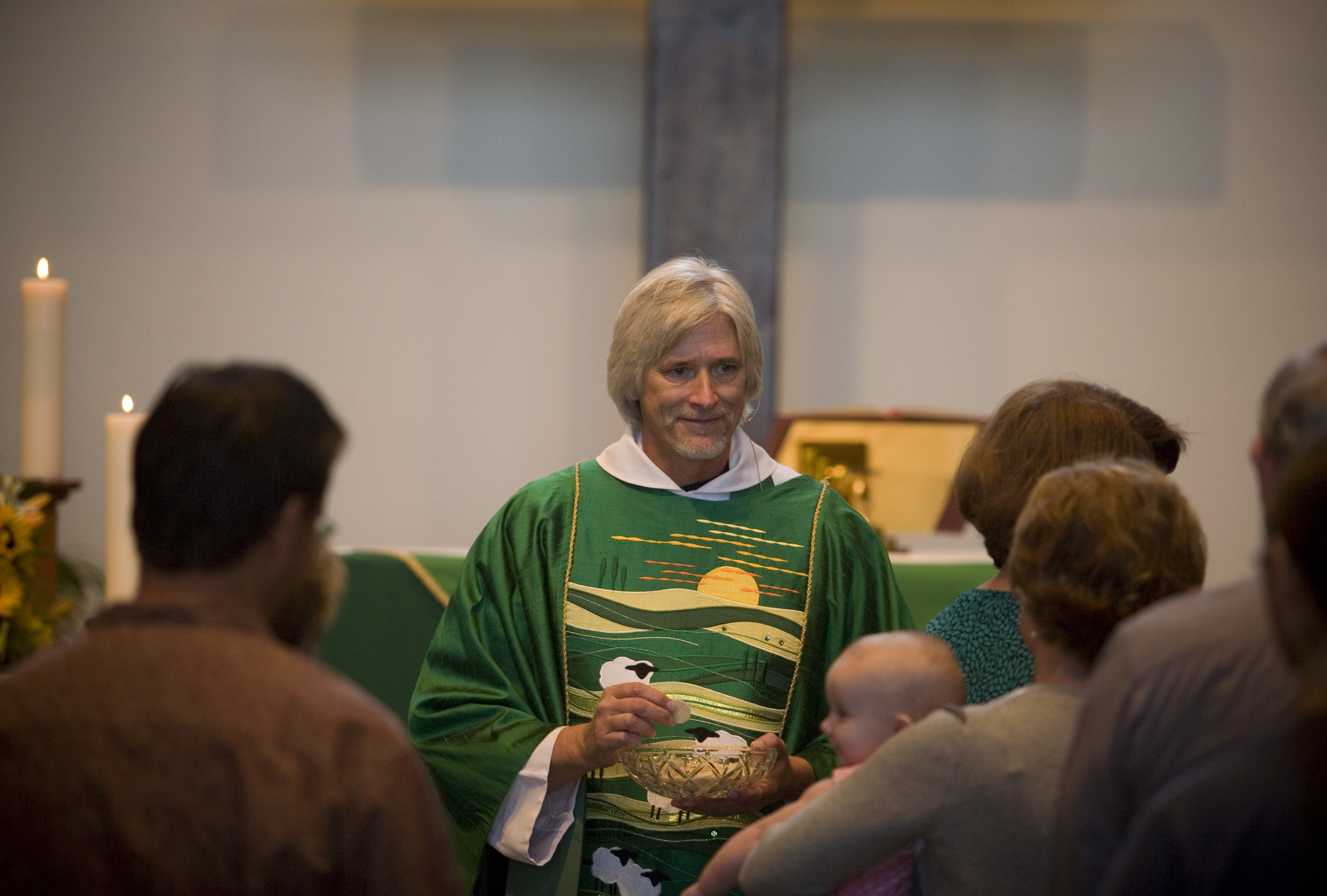 The Rev. Matt Zimmerman offers members of the congregation at St. Margaret’s Episcopal Church communion during his first Sunday at the church Sept. 13. Zimmerman helped recruit original members of the church when he lived in Lawrence in the early 1990s.