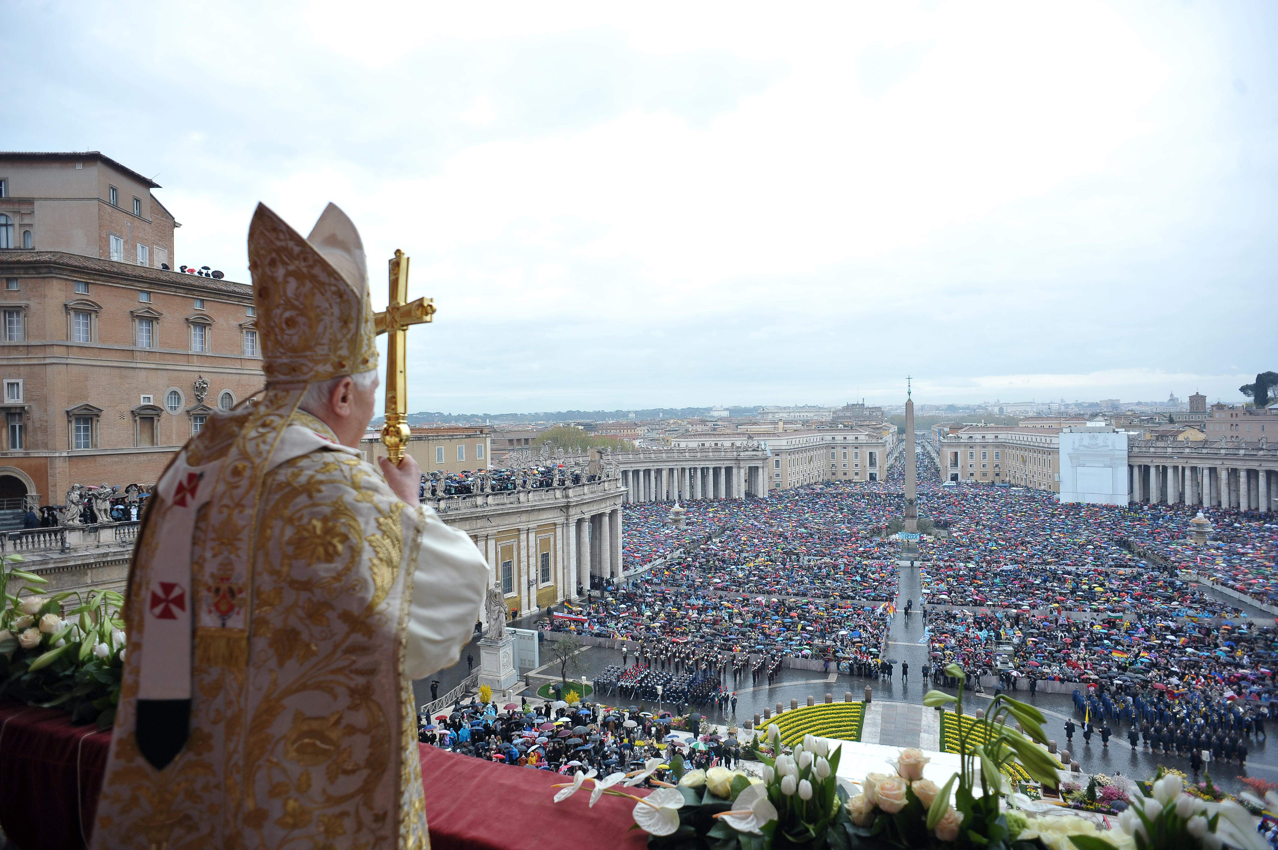 After the Mass, Benedict moved to the central balcony of St. Peter’s Basilica to deliver his “Urbi et Orbi” message — Latin for “to the city and to the world” — which analyzes humanity’s failings and hopes.