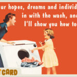 • Bluntcard unites garish colors and whitebread illustrations from Eisenhower-era magazine ads with typically R-rated modern sentiments. Rarely has an e-card been so amusing. My favorite of the moment shows two prim adolescent girls with the caption, “Can you shut the (expletive) up about vampires?”