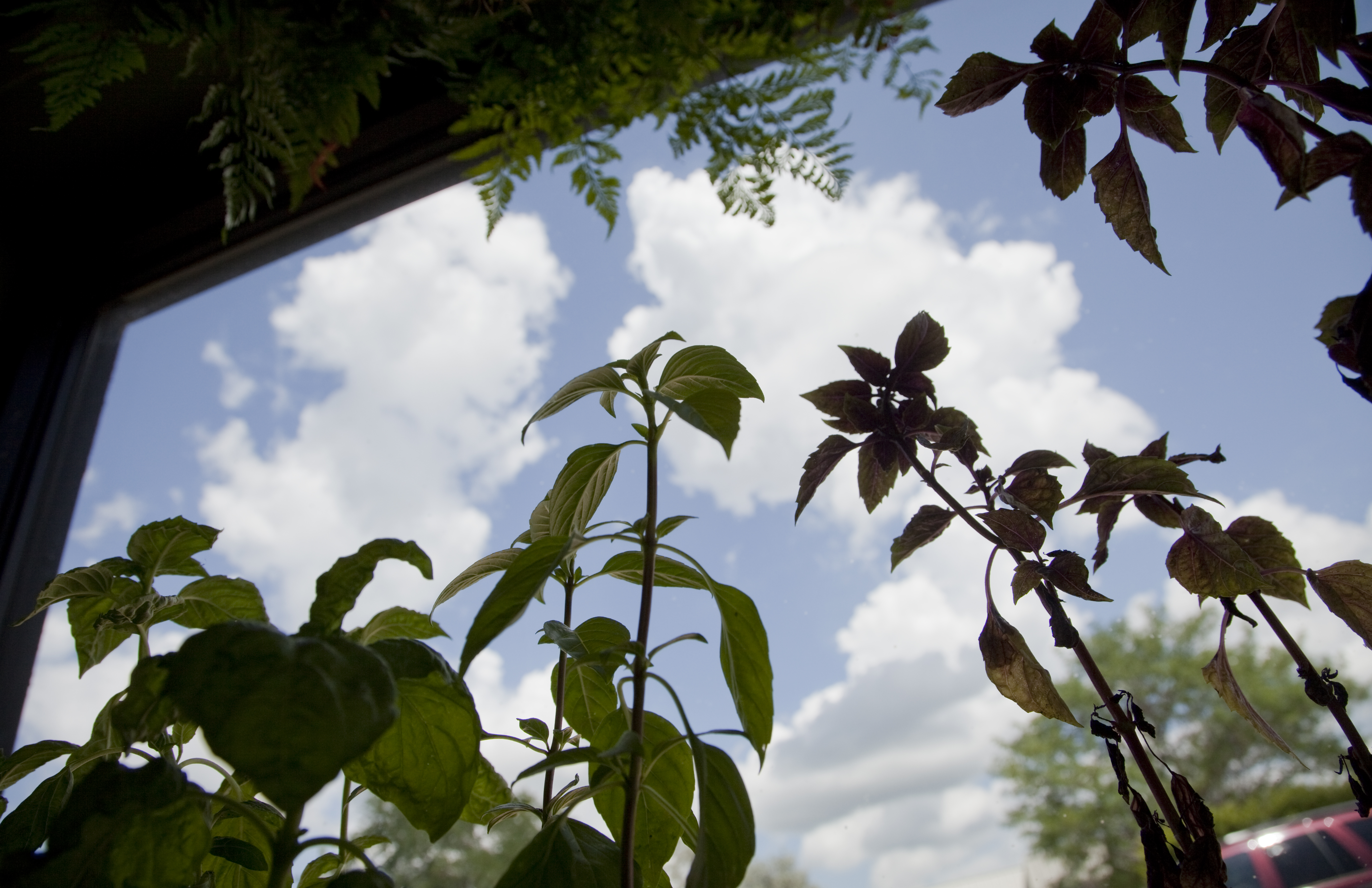 Mike Yoder/Journal-World Photo.Basil plants sit on a window ledge at Chef Bradley Walters Basil Leaf Cafe, 3300 W. 6th St.