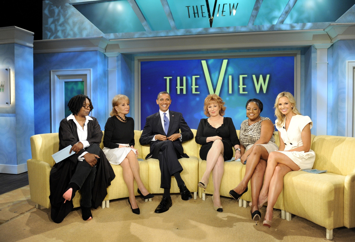 President Barack Obama is shown as the featured guest Thursday on ABC’s “The View,” with co-hosts from left, Whoopi Goldberg, Barbara Walters, Joy Behar, Sherri Shepherd and Elisabeth Hasselbeck in this photo provided by ABC.