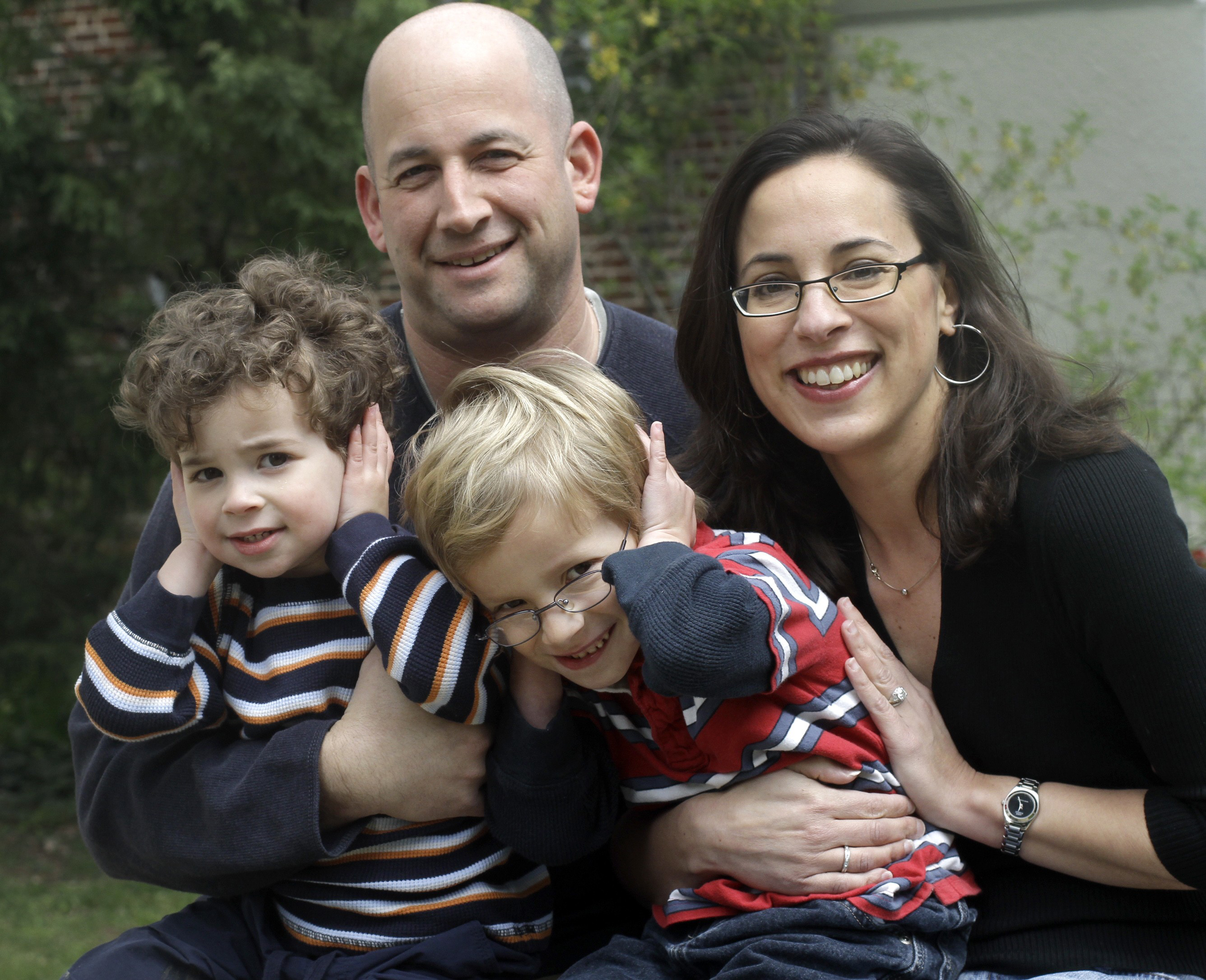Greg Abel and his wife, Jennifer Mendelsohn, hold their children Alec, left, and Ethan, right, as they jokingly cover their ears April 18 in Baltimore. Whether it’s out and about or stuck at home with no date night in sight, parents are constantly on the hunt for kid-proof ways to communicate with each other about things that can’t wait until bedtime.