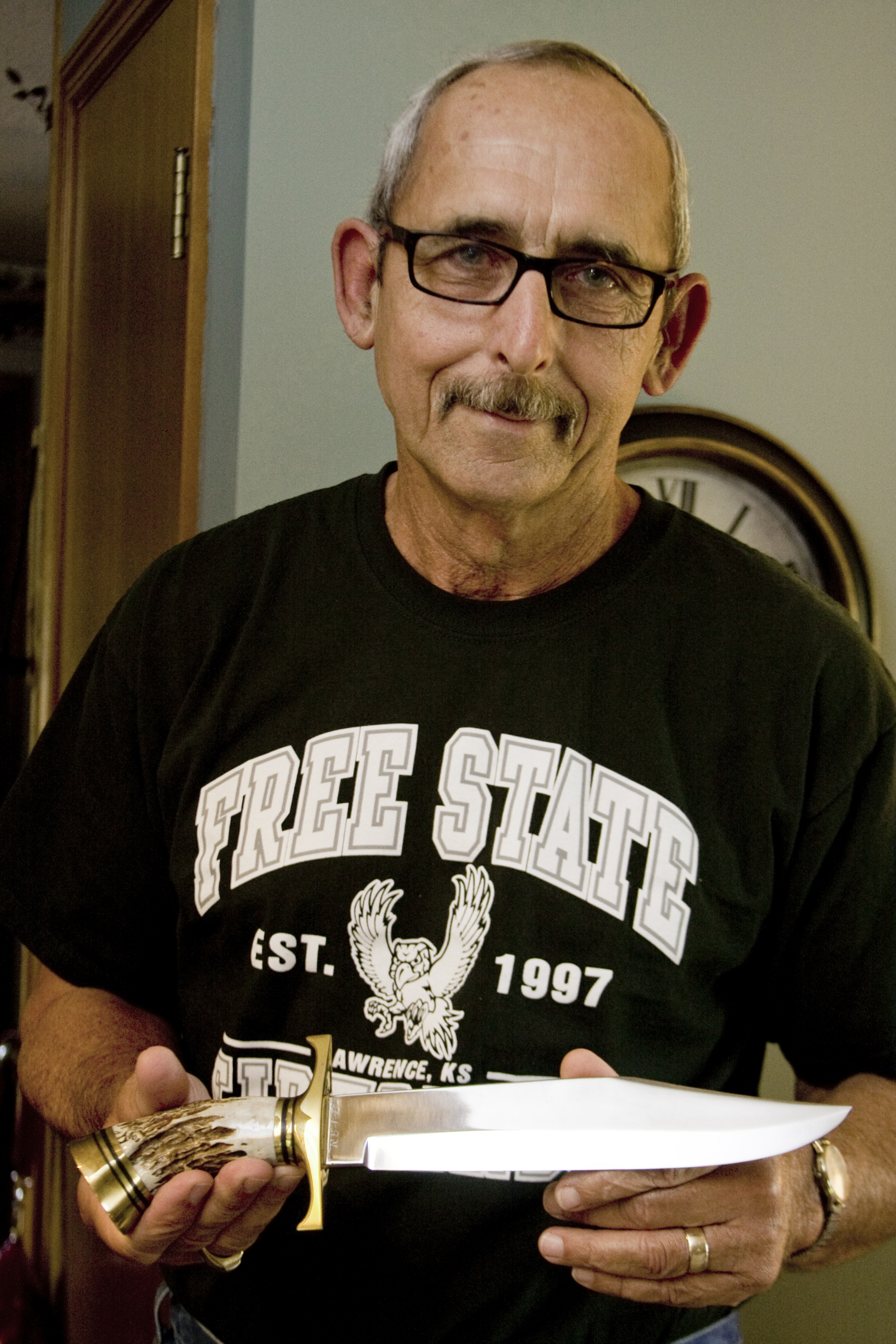 So, he is still working for Demco, a company that became part of his family while he was ill. On his days off you can find him camouflaged and in the woods hunting for deer and turkey, or at home creating impressive-looking hunting knives.