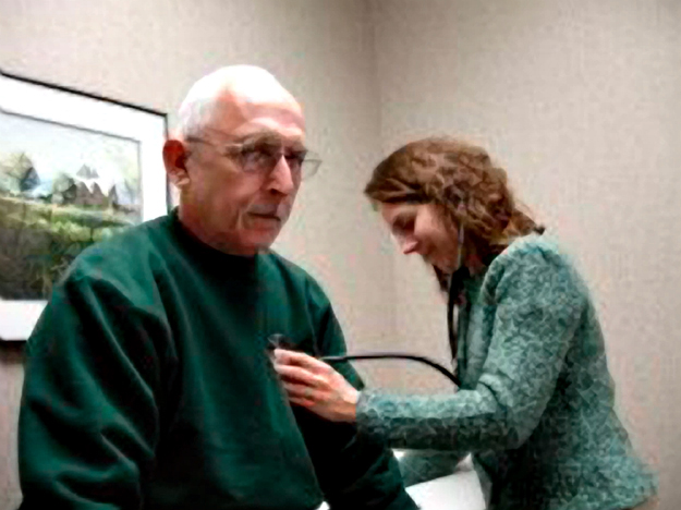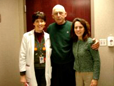 Richard Brown at LMH's Oncology Hematology Department with Dr. Sharon Soule.