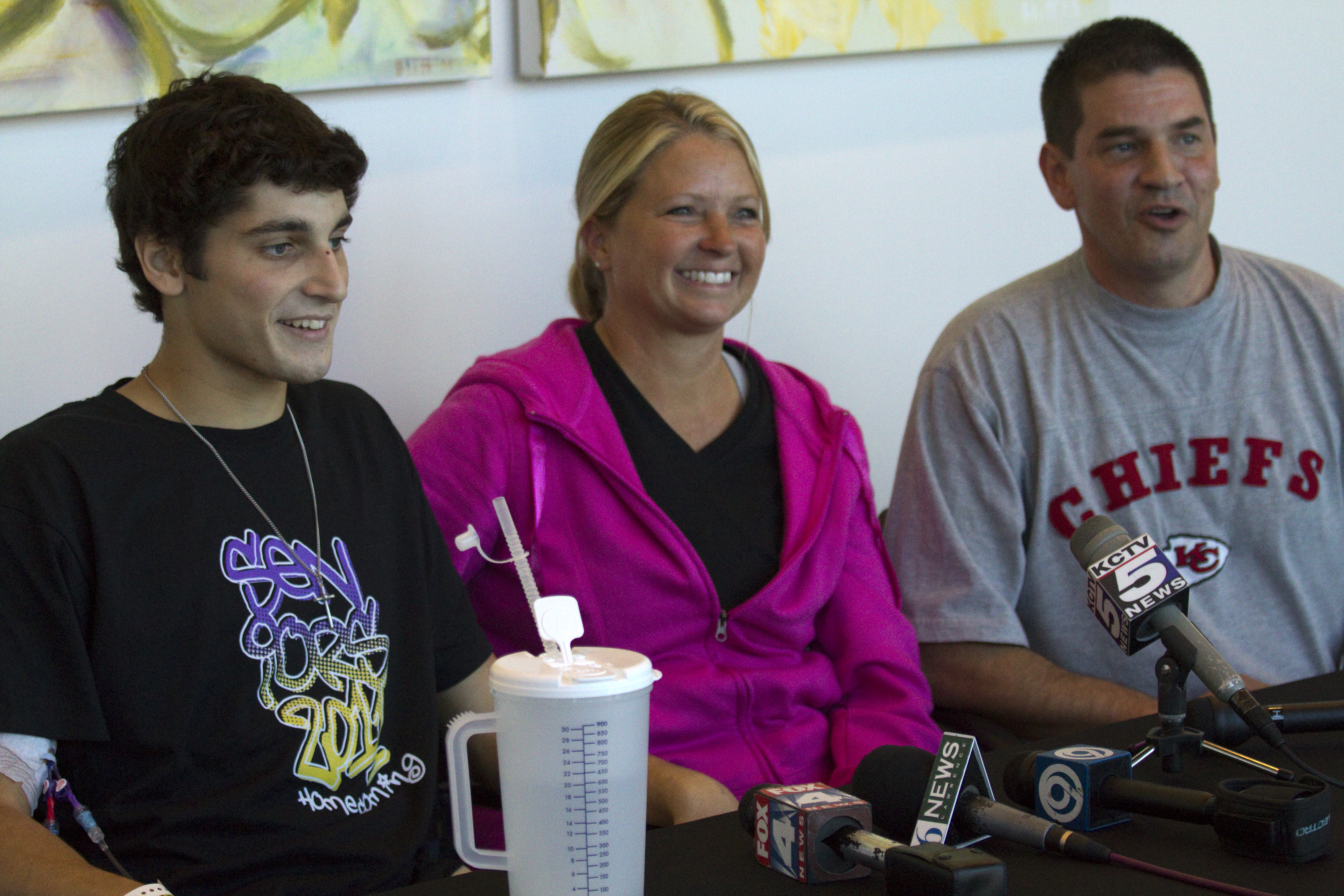 From left, Trevor Roberts, Lisa Humerickhouse and Jerrad Humerickhouse talk with the media during a press conference Wednesday, Oct. 6, 2010 at KU Hospital. The 17-year-old McLouth High senior football player lost part of his left leg after suffering a compound fracture during a game on Sept. 24. The leg subsequently contracted gangrene.