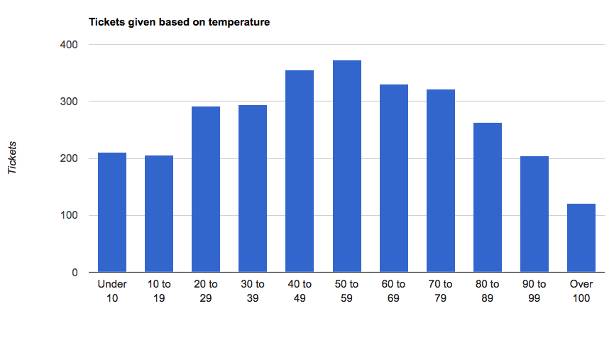 When it’s really hot, or really cold, fewer tickets are handed out, on average.