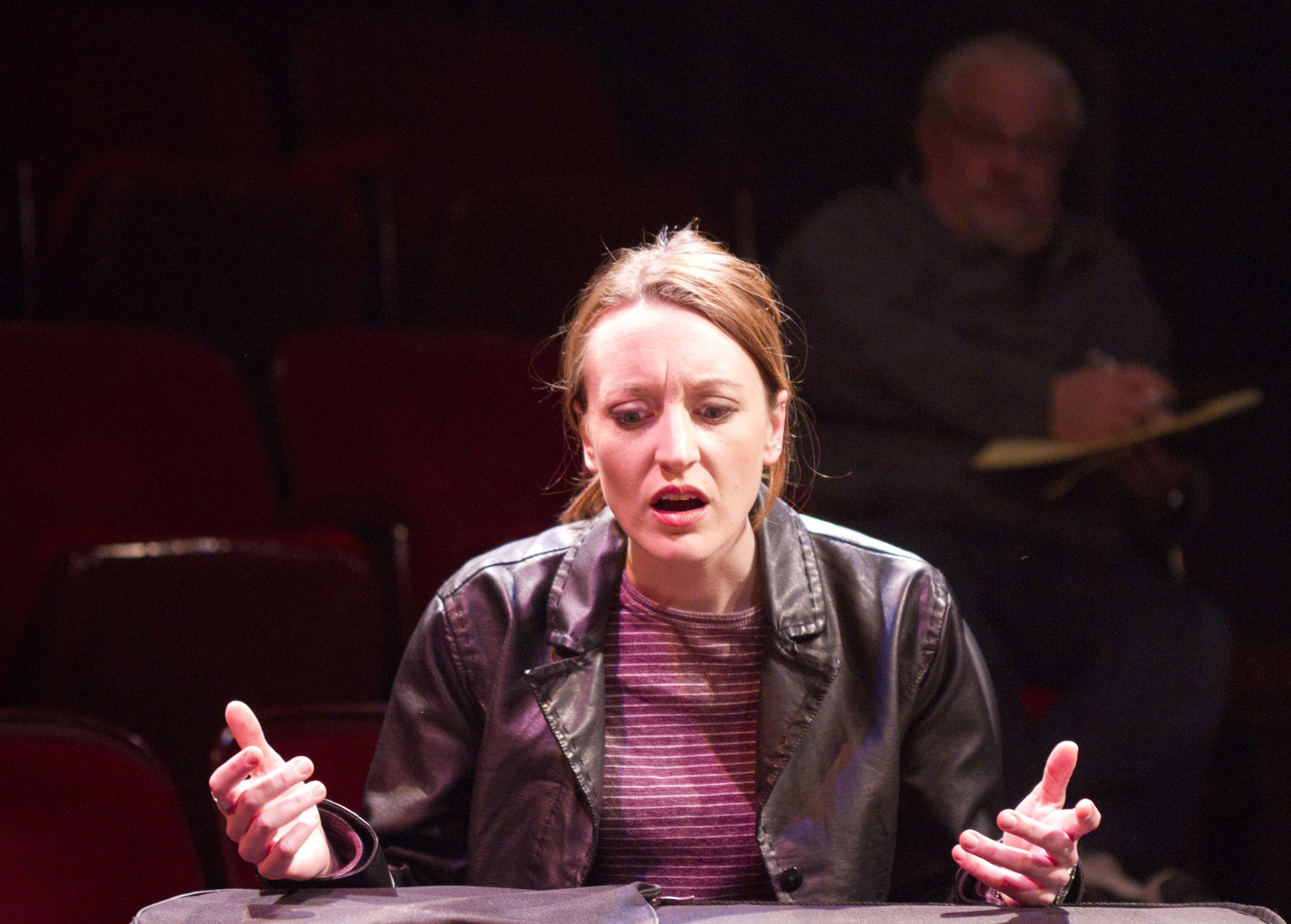 Liza Pehrson, rehearses a scene from the play Opus as director Doug Weaver watches in the background.