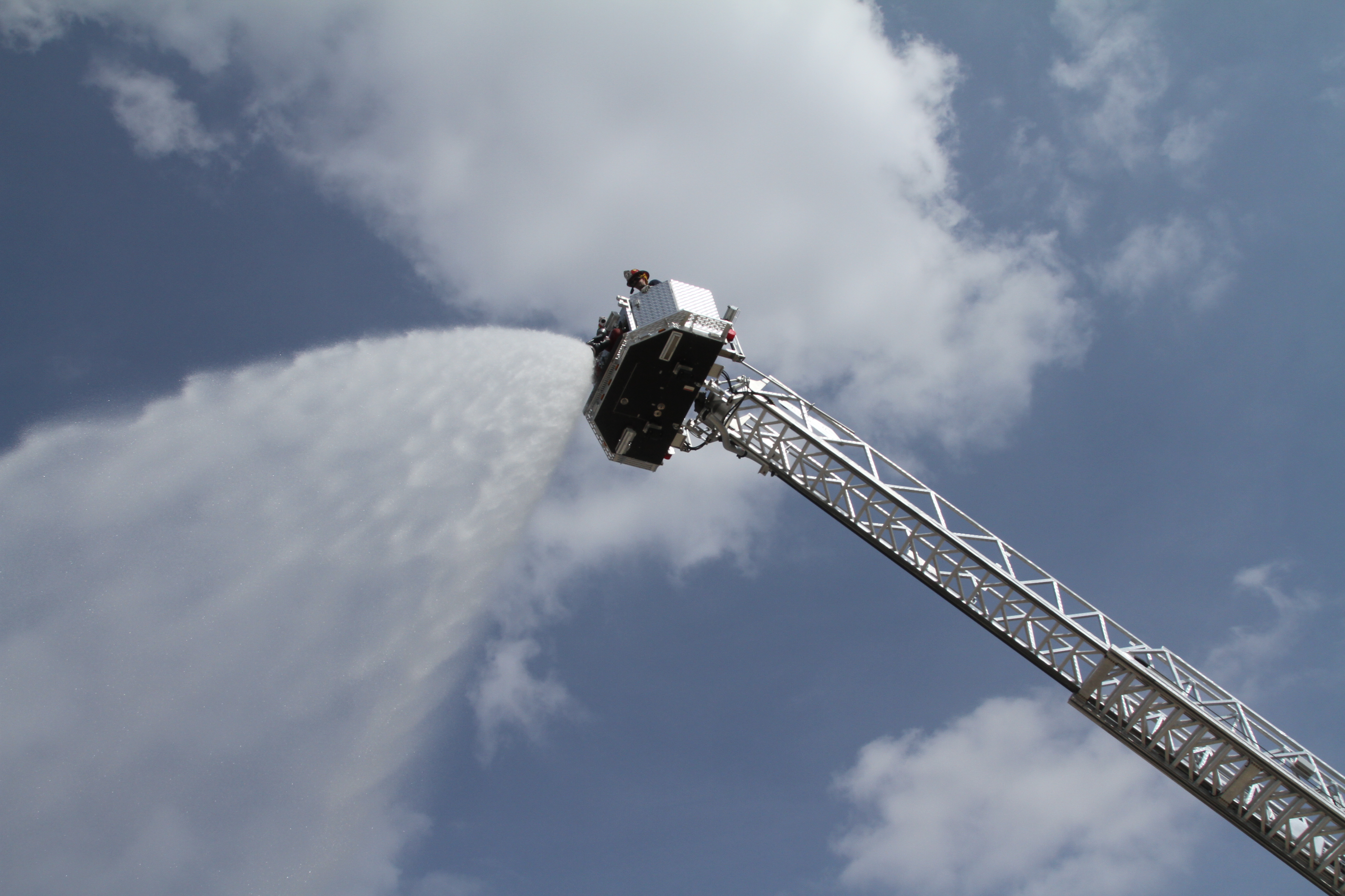 It also has a basket with a 1,000-pound capacity on top of the ladder where firefighters can stand and use two spray nozzles to extinguish fires. The department’s other ladder trucks have ladders that reach 75 feet high and only have one spray nozzle, and no basket.