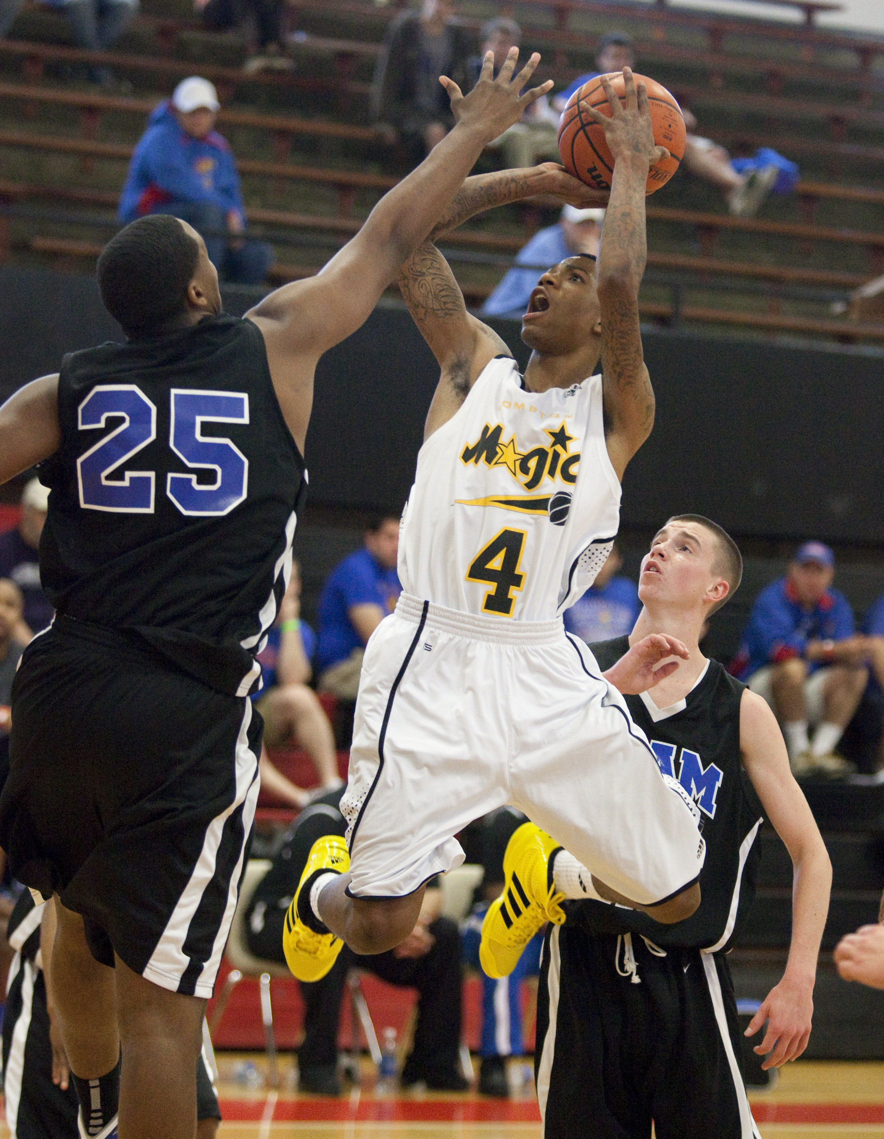 Highlights: Robert Upshaw, a 6-10, 250-pound junior from Edison High in Fresno, Calif., had 14 blocks, 11 rebounds and 10 points in Dream Vision’s 83-60 win over Kansas Mustangs. Shabazz Muhammad, 6-5, 210 from Bishop Gorman High in Las Vegas, scored 28 points in that same game. … Perry Ellis, 6-8 from Wichita Heights, scored 20 points in a 74-54 win over Minnesota Southside, 24 in an 83-53 win over Kansas Mustangs and 19 points and seven boards in a championship-round game vs. Oklahoma Elite … Mitch McGary, 6-10, 250 center from Brewster Academy in Wolfeboro, N.H., had 20 points, 10 rebounds and five blocks in SYF Players’ 81-37 win over Minnesota Comets.