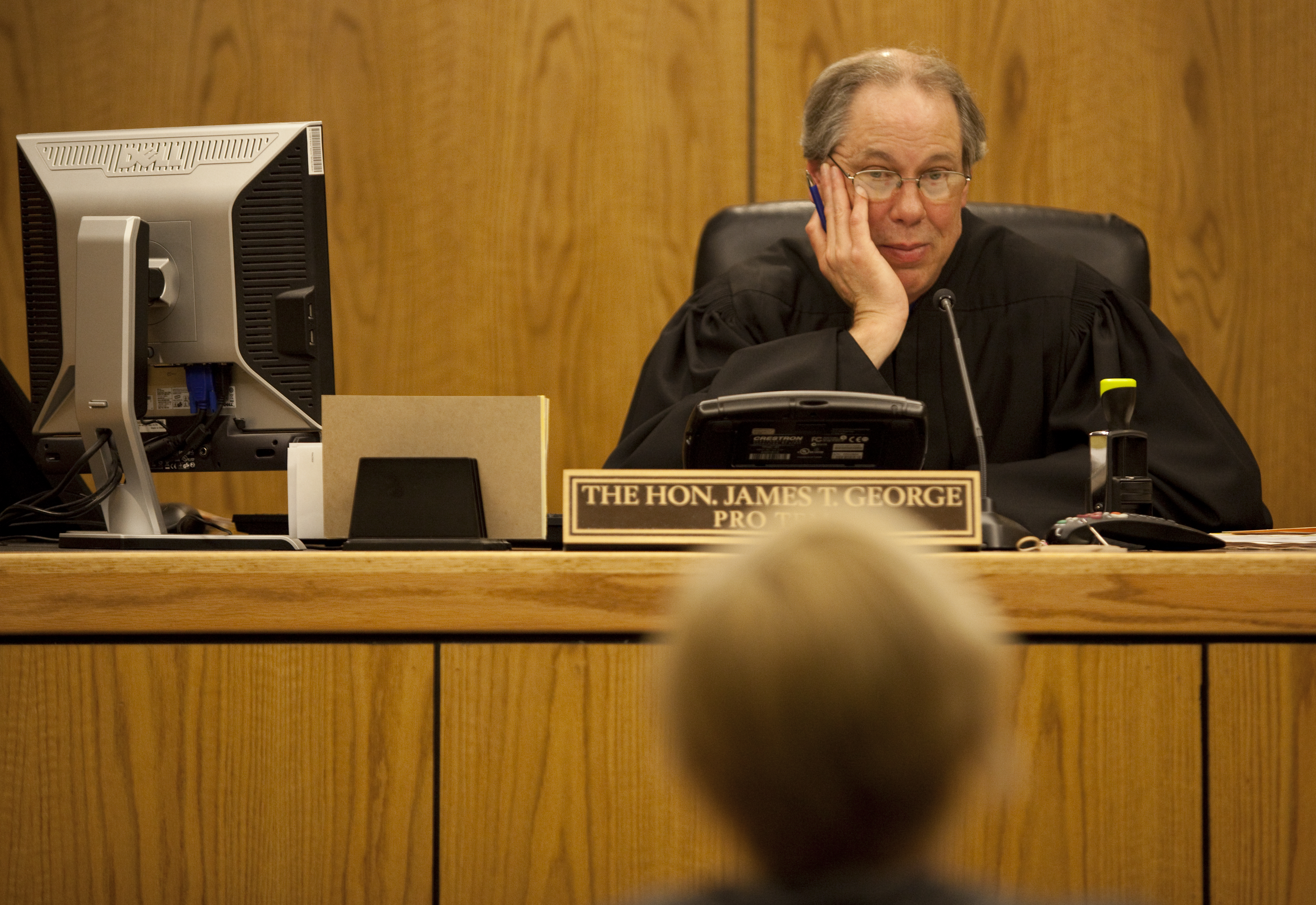 Judge Pro Tem James T. George listens to a plaintiff Thursday, May 5, 2011, in small claims court at the Douglas County Judicial and Law Enforcement Center.